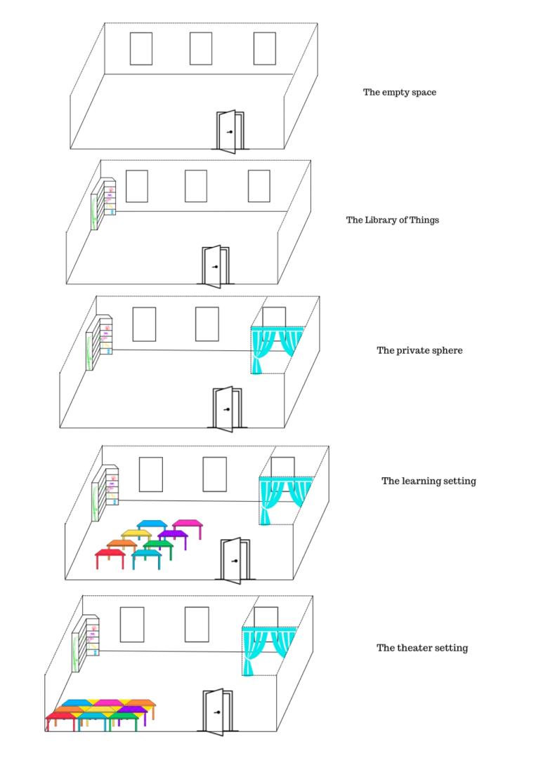 fluid and flexible environment. The project draws inspiration from the historical roots of rural communities, where self-organization was once a prevalent and effective mode of communal interaction. However, instead of adhering to traditional models of control, BiblioAct aims to break away from rigid structures. It embraces fluidity and flexibility, recognising the evolving