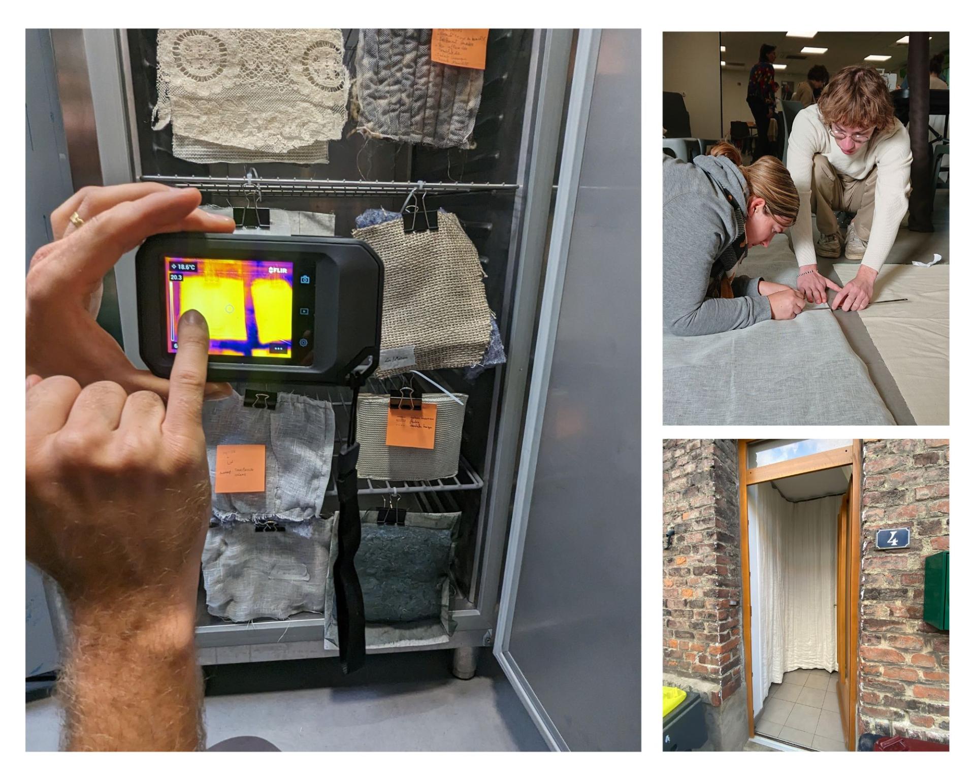 The curtain is an affordable, ecological, resource-efficient, and beautiful tool to address climate change among inhabitants. It combines thermal function (cutting off cold radiation from the wall, stopping a current of cold/hot air coming from a window, etc.), hygroscopic (capacity to store water vapor, even CO2 and VOCs) and aesthetics (visually comfortable, softness of touch). It improves the daily comfort and air quality inside the house. The curtains production requires small CO2 emissions since local materials (linen, wool, re-used textile) are used and provided by small-scale local textile industries (Northern France in our case, but each territory in Europe can find its own local materials). It is also a high-quality eco-responsible product lasting for decades going from one generation to the next.