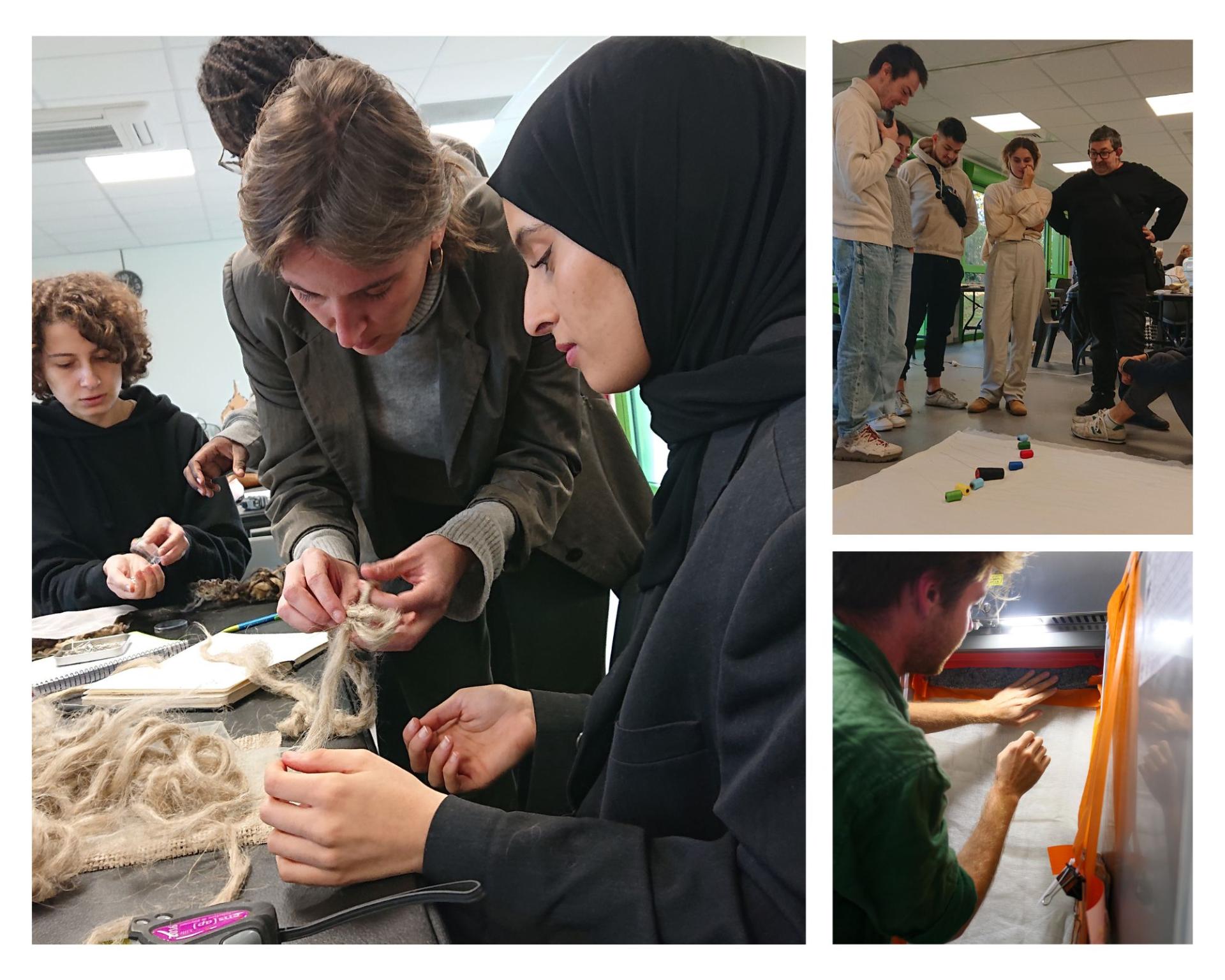 The conception and fabrication of the curtains during the series of creative workshops involved a different range of interested individuals, among them there are: youth (students from Lille's School of Architecture and young people supported by the Municipal Social Action Center), families (inhabitants of the Cité d'Orient - men and women, children, teenagers, seniors), designers (About a Worker and Emma Cogné). Also, various organizations and communities are involved, such as local NGO Corons d'Orient, Mission Bassin Minier, and local authorities such as City of Harnes and Comunauté d'Agglomération de Lens-Lièvin. Each workshop and event was facilitated by designers, researchers from Lille School of Architecture and PhD students helping in the adaptation of curtain creation for different participants (children can complete simple tasks while adults can complete more challenging tasks), the friendly ambiance encouraged a dialogue across cultures, disciplines, genders and ages.