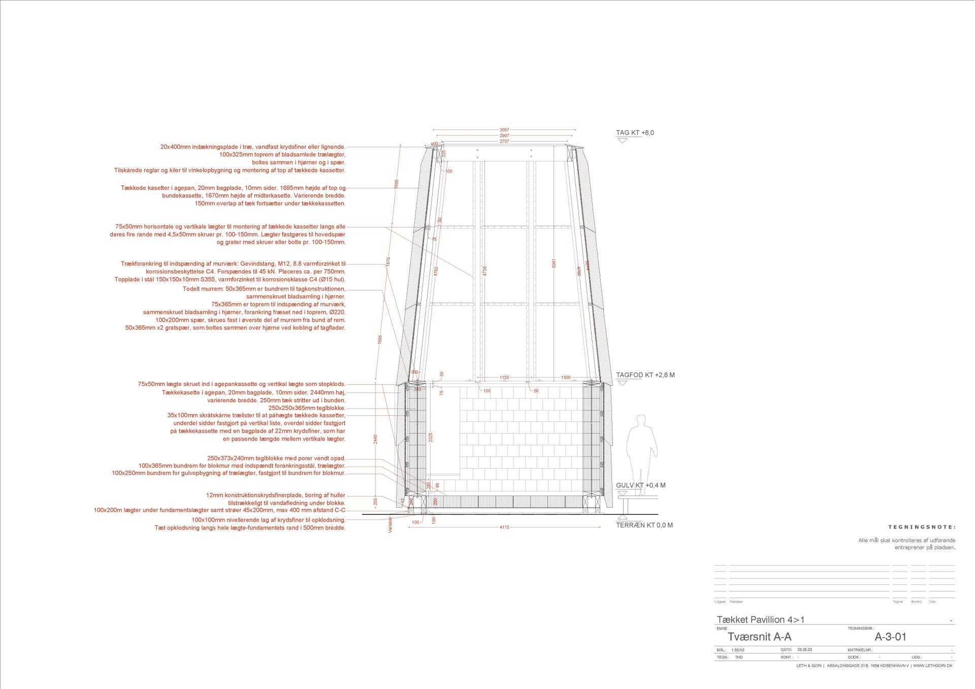 The project is based on a practice-oriented research collaboration between architects, highly skilled craftsmen, and fire experts. The approach and methodology have been practice based and the research is based on building in full scale. By building it in full scale the collaboration between parties (craftsmen, architects, and experts) is tested through the building process. The full-scale model also works as a mock-up test regarding weather, construction, and architecture.
