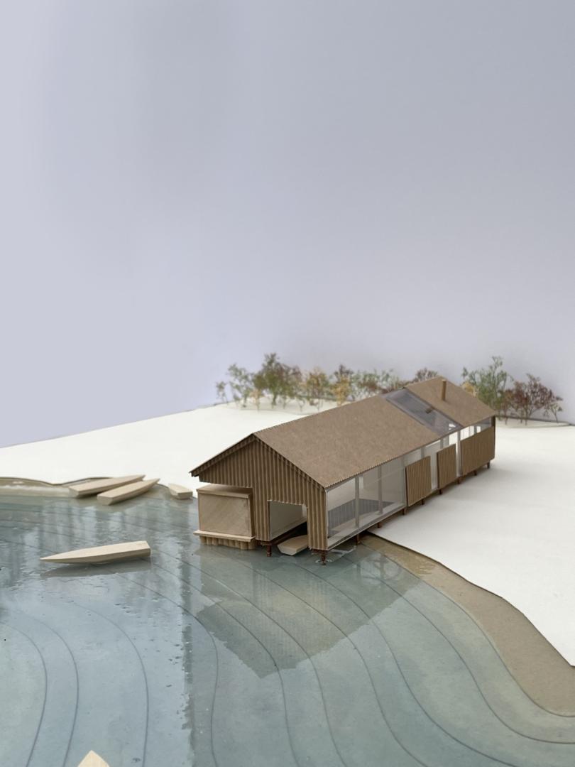Working within the natural habitat of Evros Delta with a small settlement, the project focuses on creating necessary spaces for the community with a minimum impact on nature, introducing a new core of activity within the rural space. This was achieved through the choice of a site with an already built element, the use of its existing electric and water supply and the selection of light materials that respect the atmosphere and simplicity of the surrounding settlements. For this reason, materials such as timber and steel cladding are chosen for the facades and the openings are done in polycarbonate instead of glass.