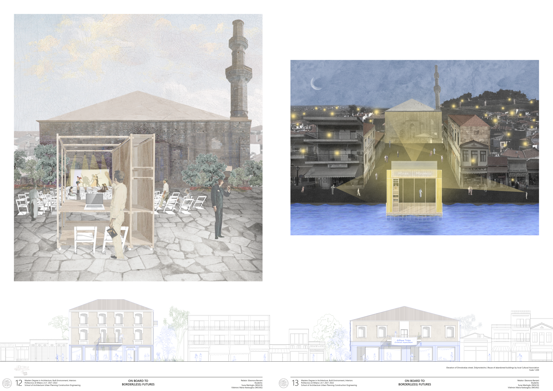 In the smaller urban context of Didymoteicho with the underlying issues of abandonment and depopulation, the project spreads within the existing public spaces starting from the riverfront. This activation of the public spaces is achieved through participatory actions, and it is perceived as a starting point for the reuse of more public spaces and buildings, specifically some cultural heritage lanmarks of the town.