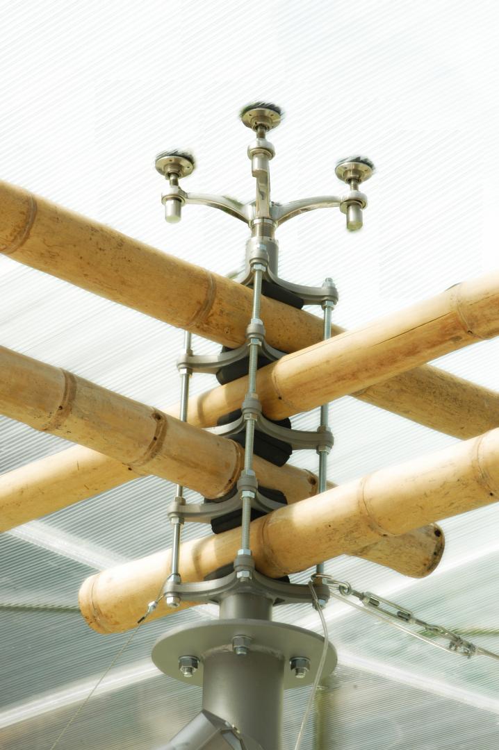 There are two different moments of the creative process when other disciplines were involved, the first when BooTech construction kit was designed back in 2005. And the second moment when BooTech was implemented; first in 2006 for the Microclimatic Pavilion, following in 2009 BooTech EcoDome and more recently in 2017 Energy Efficient Bamboo House. These are different types of architectures, functions and in different locations, so for each one was necessary to organize a specific team of consultants.