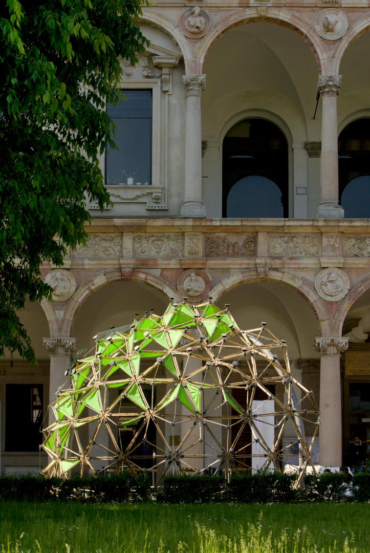 The first benefiting from BooTech were the students and young architects involved in the assemblage of the first example of the construction system, the Microclimatic Pavilion. Following the principles of learning-by-doing they experienced, under Arch. Cardenas Laverde’s supervision, the different phases, starting for preparing the bamboo poles, the “clover” joints, and finally putting together the bamboo grid. Following the opening of the Pavilion citizens from not only Milan but from various places in Italy, Europe and abroad visited the Pavilion, in the context of the Salone del Mobile, becoming aware of the negative impact of construction on the environment and the need to improve the way to make buildings in order to achieve climate goals. Was a first experience on how through BooTech we can take actions in sustainable community development. With BooTech EcoDome the experience was similar as young architects experienced the making of a sustainable dry-mounted geodesic structure.