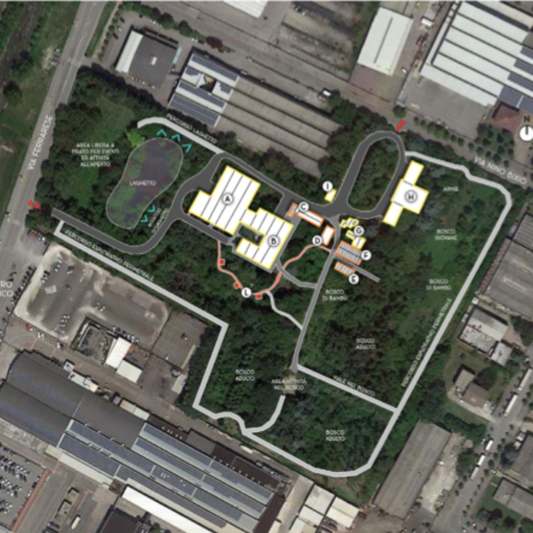 The Bosco Integrale project develops the objectives in terms of sustainability through three areas of intervention: preserving the environment, supporting recycling and regenerating biodiversity. Preserving the environment: through an analysis of the green and naturalistic heritage of the area, natural paths have been identified within the Integral Forest to guarantee access without proceeding with invasive methods. The strong work of cleaning and rearranging the paths, carried out by volunteers, has made it possible to restore some areas of the forest, without having to cut trees or modify the spontaneous growth of nature. To guarantee immersive access to the forest, almost 100 linear meters of wooden walkways were built, which, crossing a particularly suggestive area of undergrowth, thanks to its wealth of seasonal essences, allows sustainable access to the entire area. The project also intervenes in a sustainable way on the infrastructures present there. These areas have now been cleaned and progressively recovered in order to make them usable for local associations, as well as offering outdoor education courses for schools. Supporting recycling: since its official opening in 2022, the Bosco Integrale has organized exclusively sustainable events, with attention to recycling and zero CO2 emissions deriving from energy-intensive services. Furthermore, with a view to correct reuse of natural waste, any dry and fallen trees in the forest are not cut and thrown away, but left in their habitat and only made safe. Hence the third point, regenerating biodiversity: in addition to preserving the biodiversity of the flora, the Bosco Integrale has a small lake inside which guarantees the life of local fauna, made up of cormorants, as well as a fox spotted so far. Of strong impact is the presence of several beehives which, thanks to the work of the bees, not only favors the micro-environment, but also fuels an important fundraising project from the production of honey.