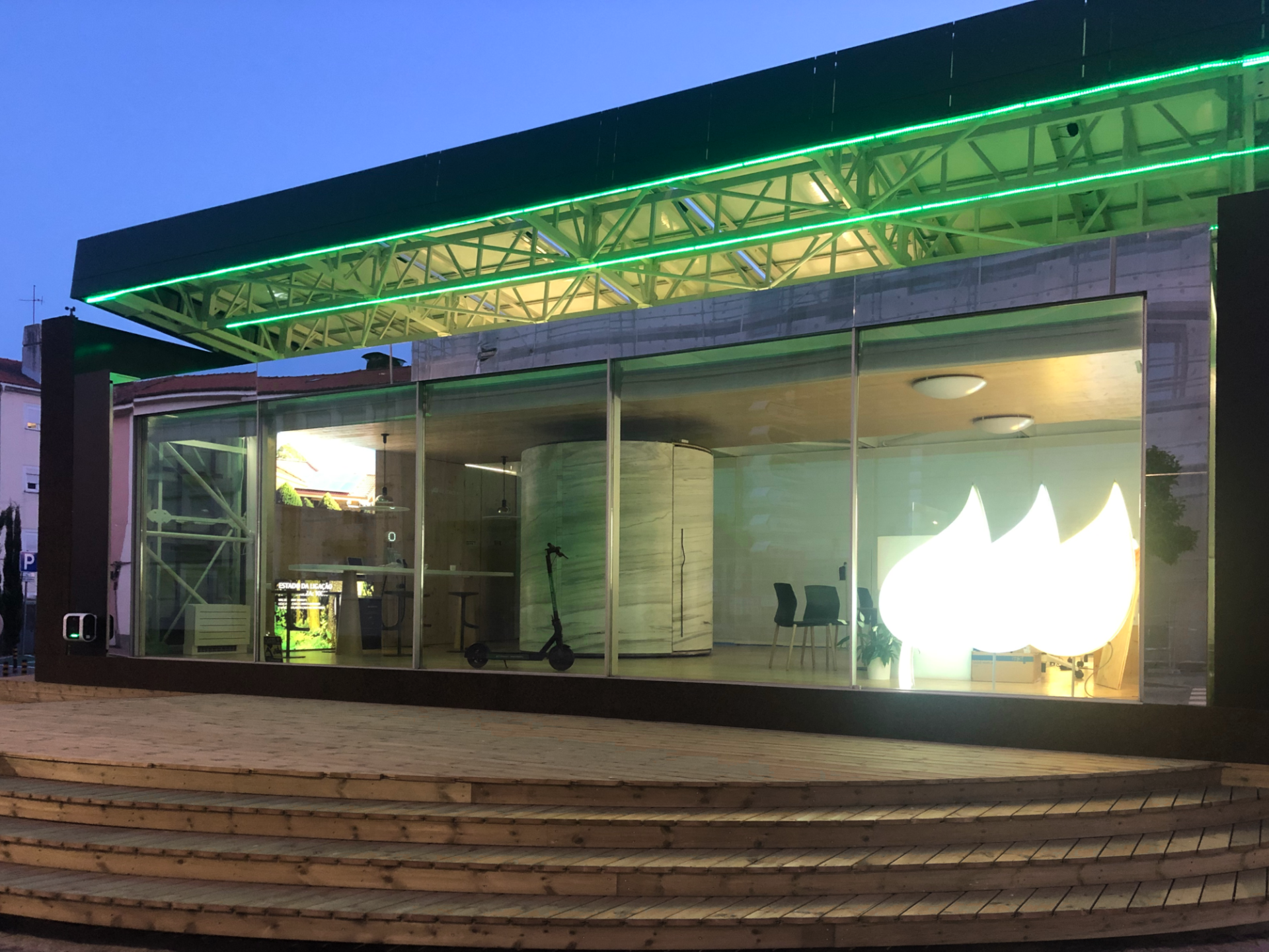 The transformation of the Building In Motion into a Store In Motion is an example on how we can use our technology in terms of inclusion: placed in a central space of the city of Matosinhos, the Store In Motion functions as a HUB for electric vehicles. With 5 EV charging points associated to it, users can power their electric vehicles with clean energy (some of it provided by the Building In Motion), while using the interior of the store in motion as a “lounge”, where they can rest or work in the meantime.