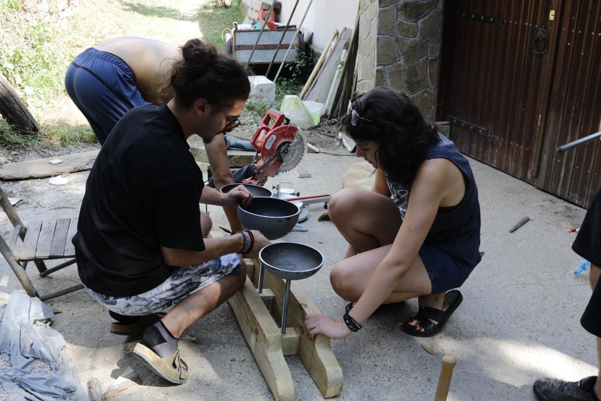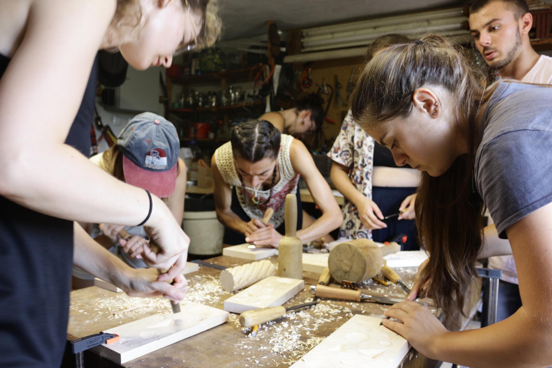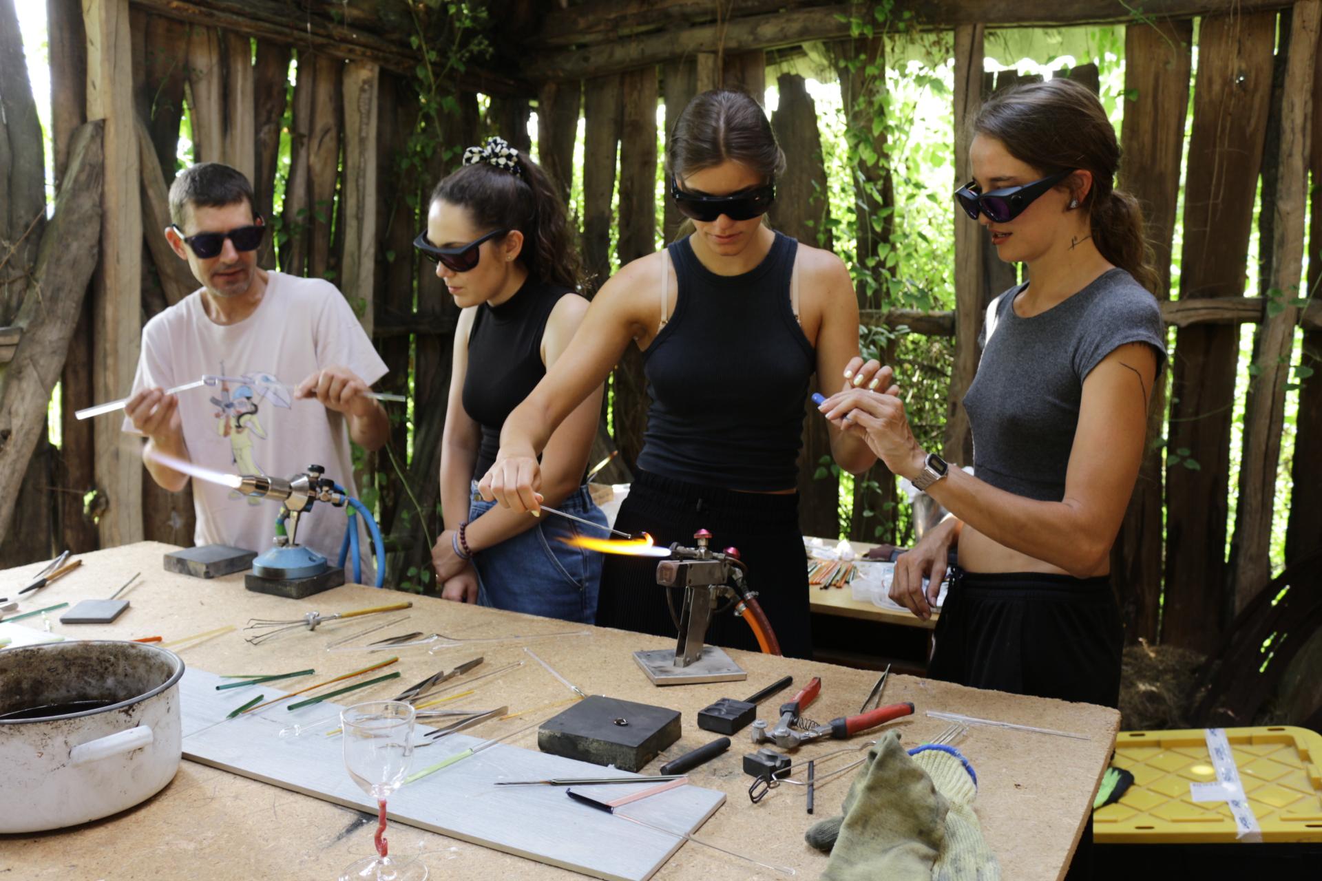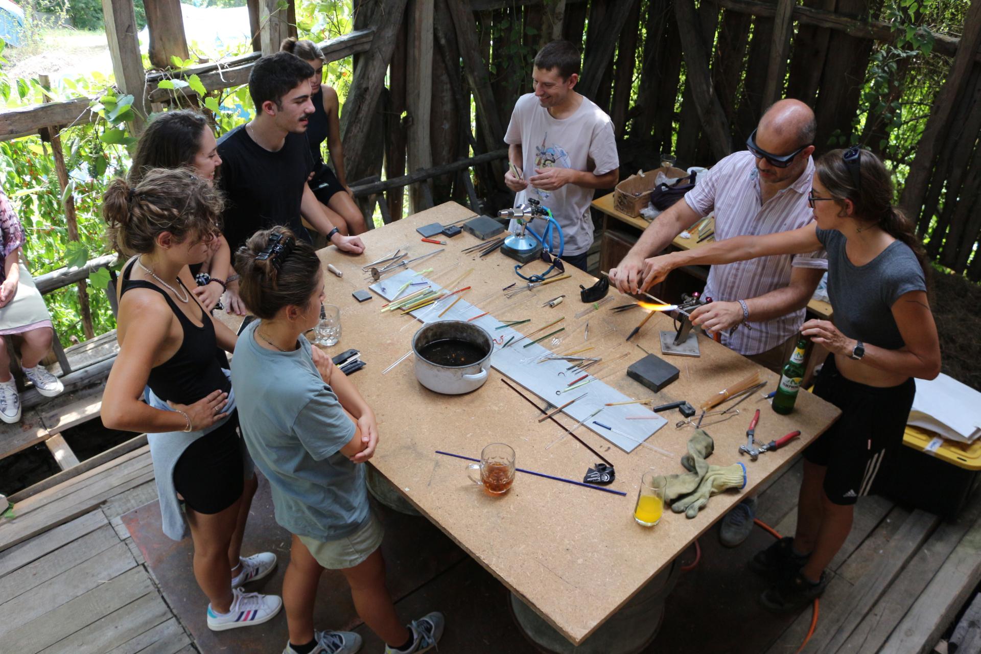 There were guest tutors in the fields of pottery, glassworking, woodcarving and bread baking. All of them provided the participants with the opportunity to experiment by working with new techniques and materials. One of the most spectacular experiences was the visiting workshop of glassmaking led by two guest tutors from Barcelona, who involved the participants in the beautiful but dangerous process.