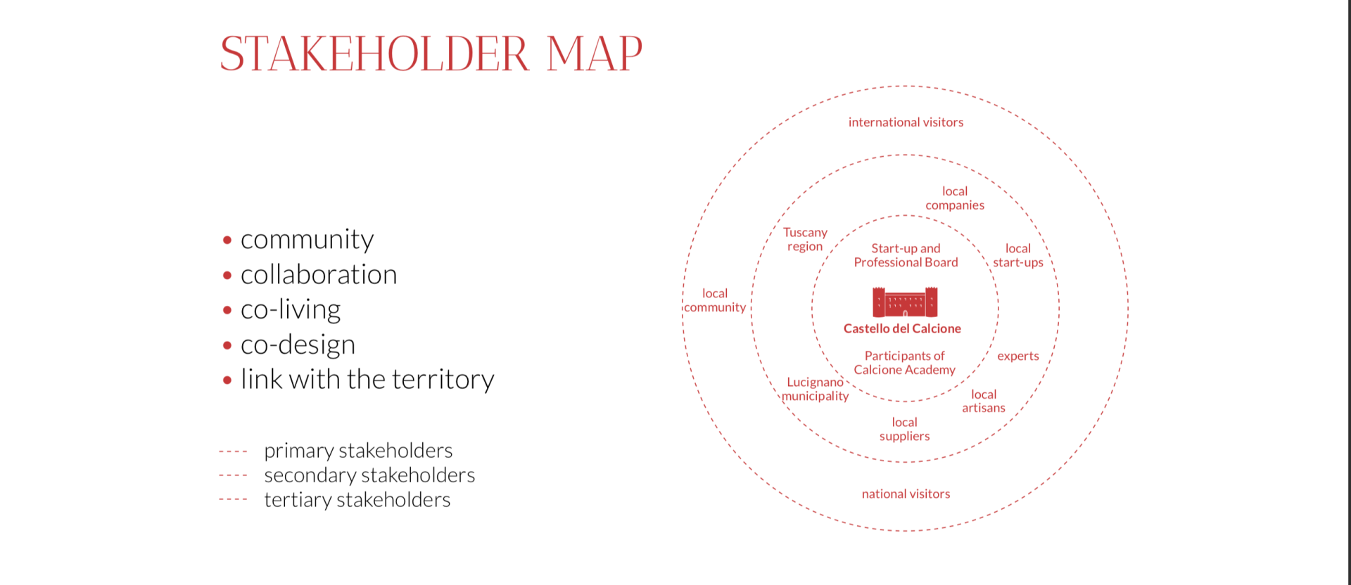 In particular, the first experience of Calcione Academy, which will have as its goal the design and construction of a physical and digital structure (an open-air stage) capable of hosting a schedule of heterogeneous cultural events, was designed precisely for its propaedeutic function, to be a lever for the entire project to enhance the territory of Castello del Calcione. The final outputs created by the Academy participants will pave the way for numerous future developments: both in structural terms, with the expansion or relocation of the stage, for the related services, and in terms of content, opening to infinite possibilities. A first review of heterogeneous cultural events and activities will attract local and international stakeholders interested in this new model, which will form the first nucleus of an international community that will grow in and around Calcione in the years to come.