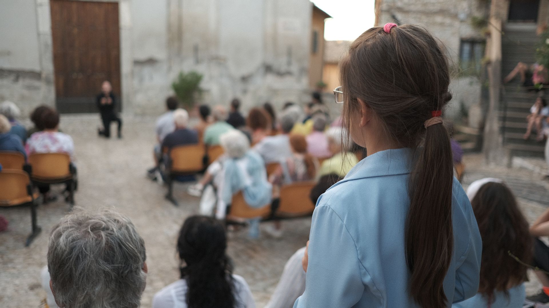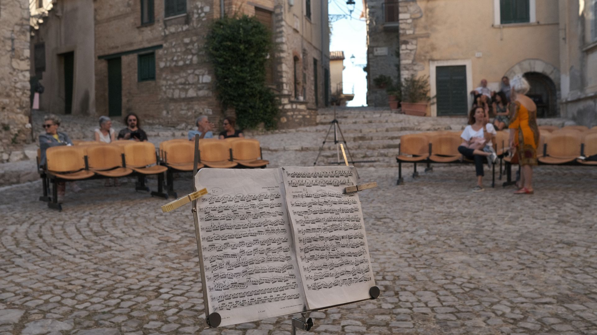 spaces of the village, thus avoiding the use of electric light and amplification instruments. The decision to organize the event completely in acoustics and in dialogue with the different shades of daylight responds both to the need to return to the intimacy of the relationship between people, and to promote a sustainable and ecological model in the enjoyment of art.