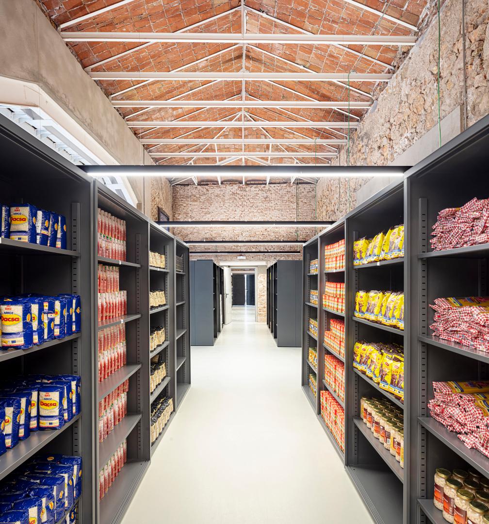 The third is related to one of the main uses of the facility: storage and distribution of food. El Roser has been designed to coordinate the Reus Food Management Programme, based on making the most of fresh and cooked food that, despite being suitable for human consumption, would otherwise be excluded from the commercial circuit and end up as waste. The food arrives to be distributed either in meals in the social canteen, or to homes or in the basic parcel of fresh produce that users can pick up. The project took special care to design spaces that facilitate the efficient handling of produce to avoid damaging it, and storage and preservation spaces with easy access