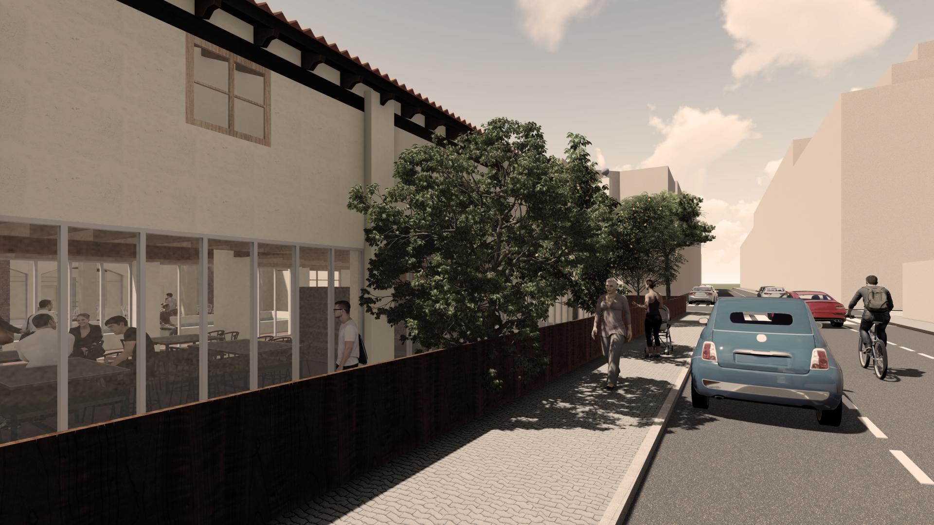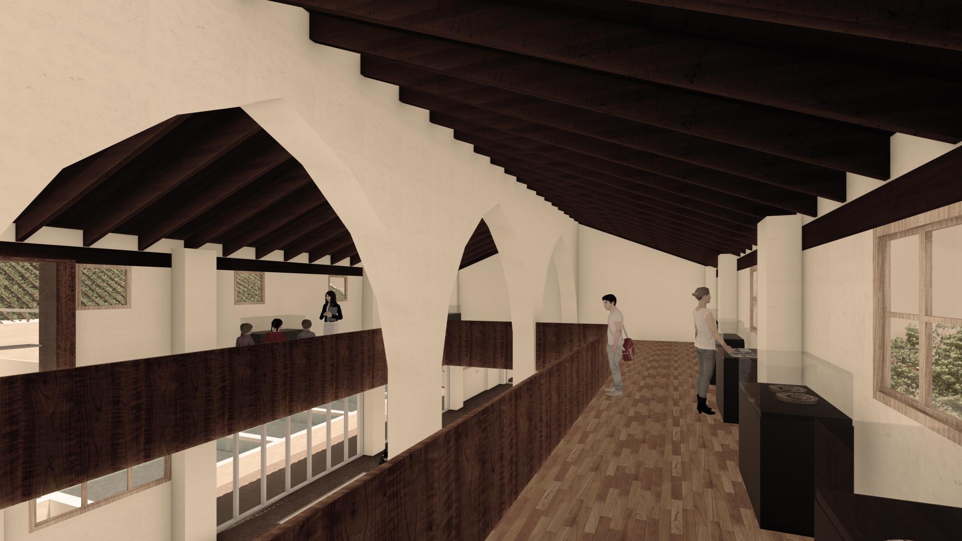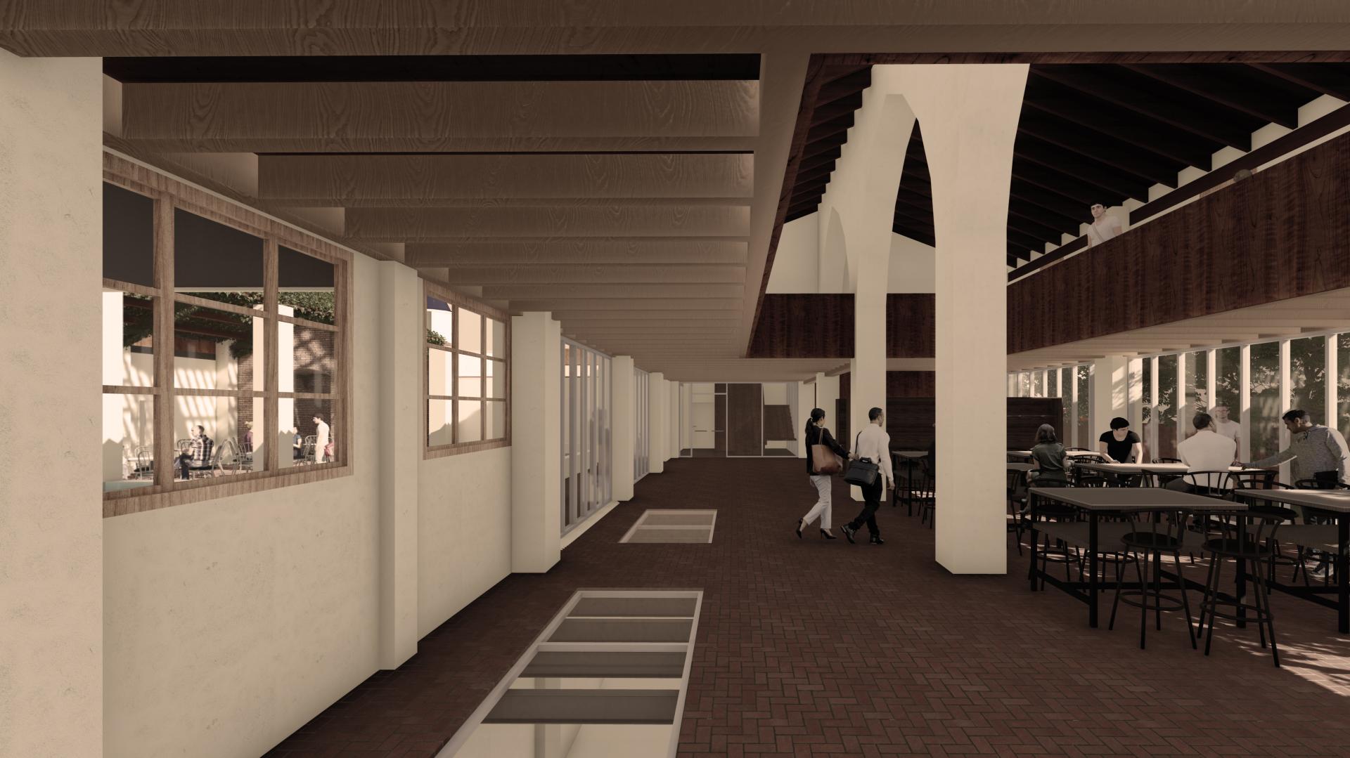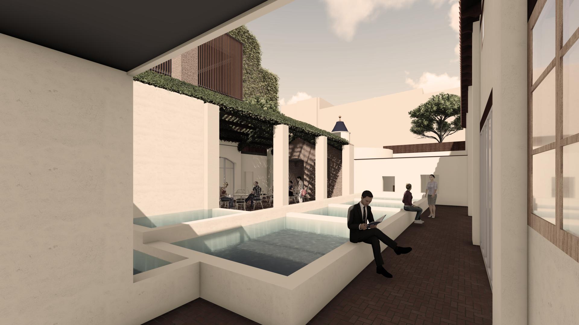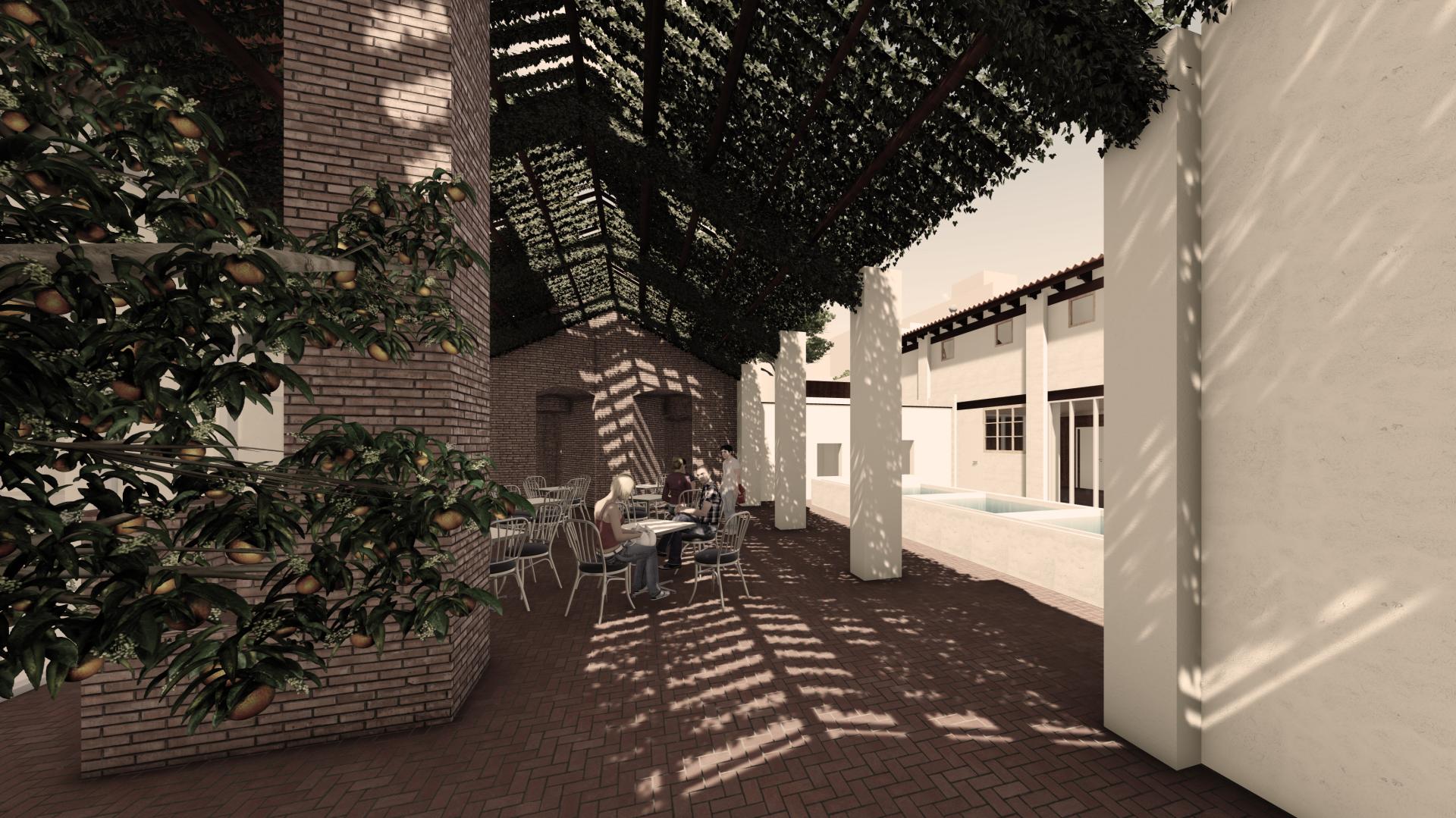The use of local typological elements in the design aims to accentuate the sense of familiarity in the visitor. Enhancing the central patio, the fulcrum of the complex, is intended to recall a scheme typical of local historical houses and already adopted in the factory itself. The creation of large terraces, an open-air continuation of interior spaces, refers to a key element of Valencian social life, emphasising public character of the place. The insertion of a pergola to replace a collapsed roof aims to create a natural oasis that evokes feelings of nostalgia and tranquillity, using an element typical of Valencian countryside houses to create a connection with a theme strongly rooted in the collective imagination.