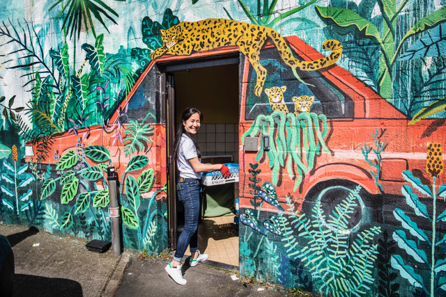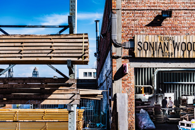 By encouraging the use of –in this order– biking, public transport & electric vehicles - we lower traffic congestion and air pollution. Despite hosting over 30 companies and providing workspace for over 200 people, we've consciously limited the parking space to less than 40 vehicles (incl. logistic vehicles).The site also hosts a thriving bike courier cooperative that offers answers to the last-mile problem of the logistical urban puzzle.Lastly, we strive to increase local production capacity. By supporting local manufacturers and promoting local products,we can strengthen the local economy, reduce transport emissions, and further strengthen sustainability.