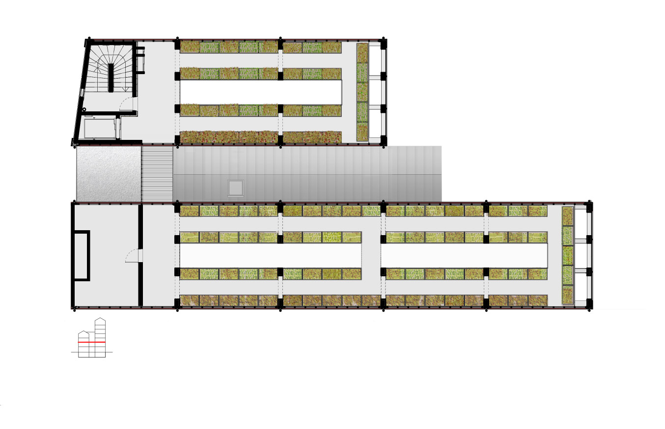 At the crossroads of a horticulture greenhouse, industrial building and public facility, the vertical farm has been designed in a rational way :