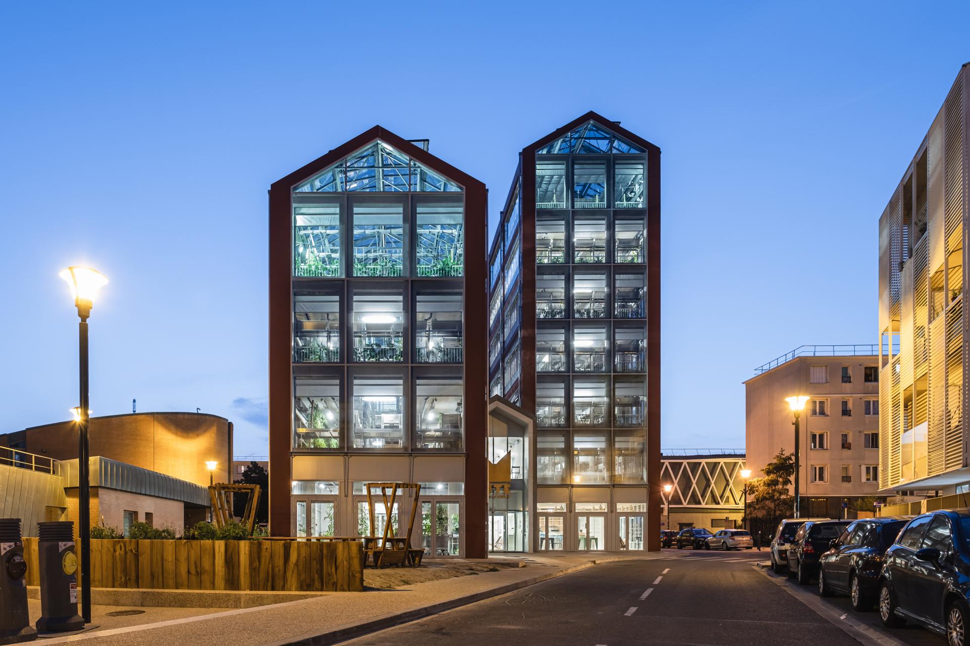 It is the first building of its kind to provide vertical urban farming in France. The ground-floor of the facility, dedicated to the public, allows access to a restaurant along with workshops and pedagogical gardens while the upper floors are used for crops production and harvesting.