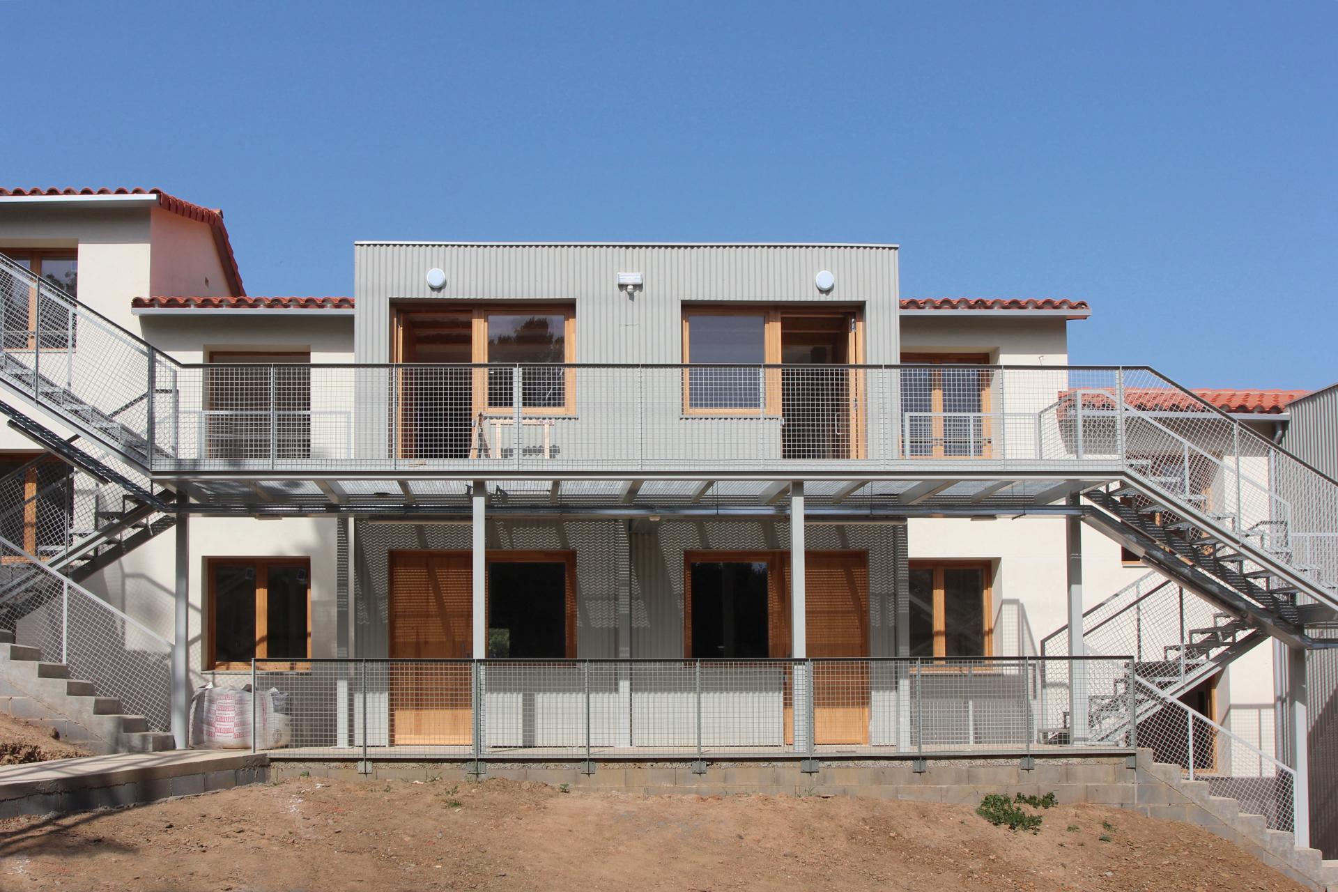 The project started before 2015, when the citizens of La Floresta (Sant Cugat neighborhood) reclaimed the use of that abandoned building to transform it into a social housing for the neighbors. The citizens' mobilization took effect on the municipality government, which lent the building to Sostre Civic to transform it into a housing cooperative project. Sostre Civic is a housing cooperative developer with more than 1100 members that promotes the right-to-use model, guaranteeing collective property beyond the development phase. The project was funded by Fiare ethical bank, Sant Cugat City Council, Catalonia Government and the members of the cooperative. Thanks to the public-cooperative collaboration and to the municipal commitment of creating affordable housing, the people that live in this project are paying less money than a regular social housing project. The project’s development is based on active democracy, which is applied in all the project phases: the architectural design, construction development and the management of their living. For doing so, the members of the project are organized through working committees and take their decisions in general assemblies collectively. The project consisted on the renovation and extension of the old school teacher's houses, transforming 6 semi-detached houses into 11 dwellings and one collective space. The building intervention promoted the conservation of historical heritage design through using bioconstruction materials, nZEB standards and implementing the collectivisation of the common services. The construction process was also very innovative: 20% was self-built by the members of the cooperative whereas the 80% remaining was conducted by the first construction cooperative company in Spain, La Constructiva. The recuperation of the collective historical memory of the old school house building to promote social housing reinforced the project with the local community.