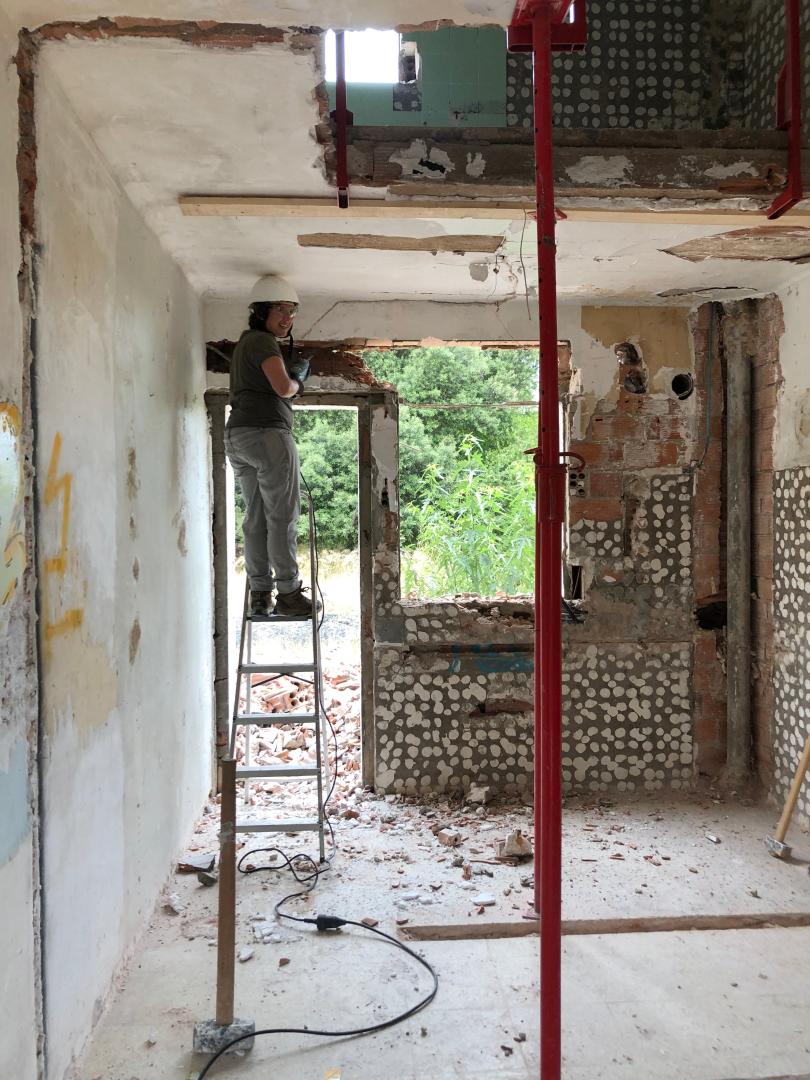 The project started before 2015, when the citizens of La Floresta (Sant Cugat neighborhood) reclaimed the use of that abandoned building to transform it into a social housing for the neighbors. The citizens' mobilization took effect on the municipality government, which lent the building to Sostre Civic to transform it into a housing cooperative project. At that moment, a seed group was created and Clau Mestra group was officially launched. Clau Mestra is an intergenerational group formed by 16 adults and 8 children from the neighborhood. As a cooperative housing project, democracy is a key item when it comes to developing a project. Regarding the architectural design the interior distribution was defined through a participatory process based on two social research methodological tools: a situational survey and working sessions. The process took into consideration the individual needs to create a collective proposal where all members' demands and requirements were reflected. To decrease the construction cost of the project, the members of the project have self-build collectively part of the building renovation process. This stage took place during the summer holidays, which allowed them to be more efficient to deconstruct some parts of the building and to invite others to collaborate with the project. The collective self-build process helped the members to connect and relate to the project and the people that will live there. During this last stage, the members keep being the protagonists of all that is related to the building, both individual and collective dimension. That means the members are the main responsible for the building maintenance, as well as the economic and financial issues and the community governance. As the project is to be connected with the neighborhood and become an example of what can be done with abandoned architecture, a collective space within the building is planned to be open to the public.