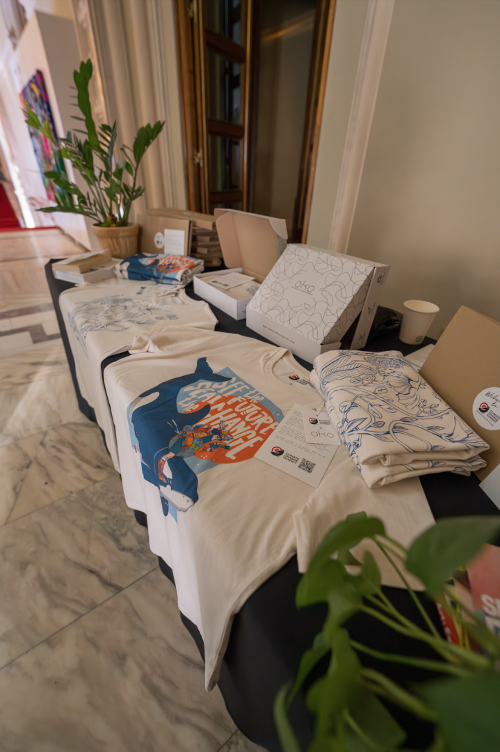 Highlights include Ukrainian artist Normski's "Painting the Future" mural in Bucharest, a sustainability emblem encouraging reflection on climate change, and the "Lumea9" exhibition, showcasing local artists' sustainable techniques, underlining the urgency of a sustainable future. Mădălina Pavăl Orchestra’s performance at the 2023 Summit adds a deep, cultural touch, while our eco-conscious t-shirt collaboration, featuring QR-coded animations, showcases innovative climate advocacy.