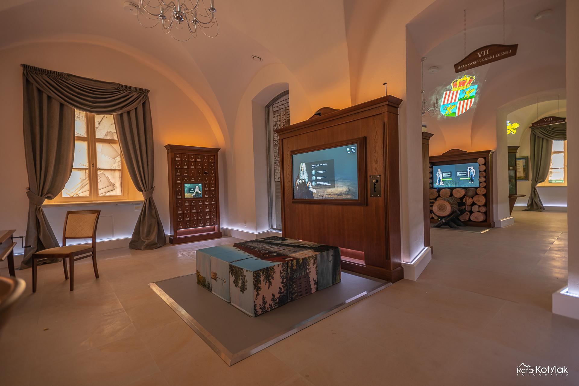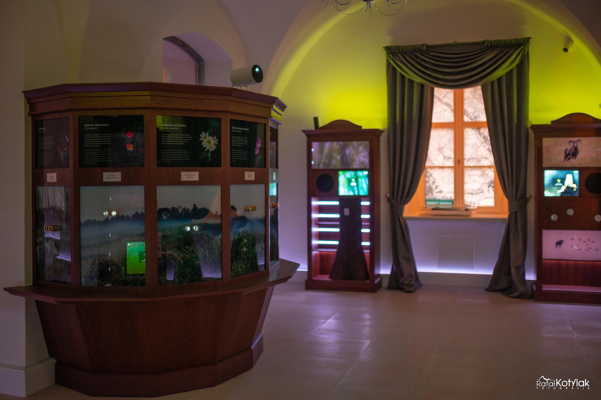 textures and smells, affecting our senses and emotions."Sobieszów Palace” is the other exhibition and this one tells the story of the history of nature conservation in Karkonosze over the centuries and gives the information about the Schaffgotsch family who were the owners of the Palace before the Second World War. One can learn a lot about the family's cultural contribution to the development of the Karkonosze region. Despite its historical background, the exhibition also gives the impression of being modern, intriguing and interactive. It uses a number of modern multimedia technologies integrated into traditional furniture, scenographic and architectural forms.