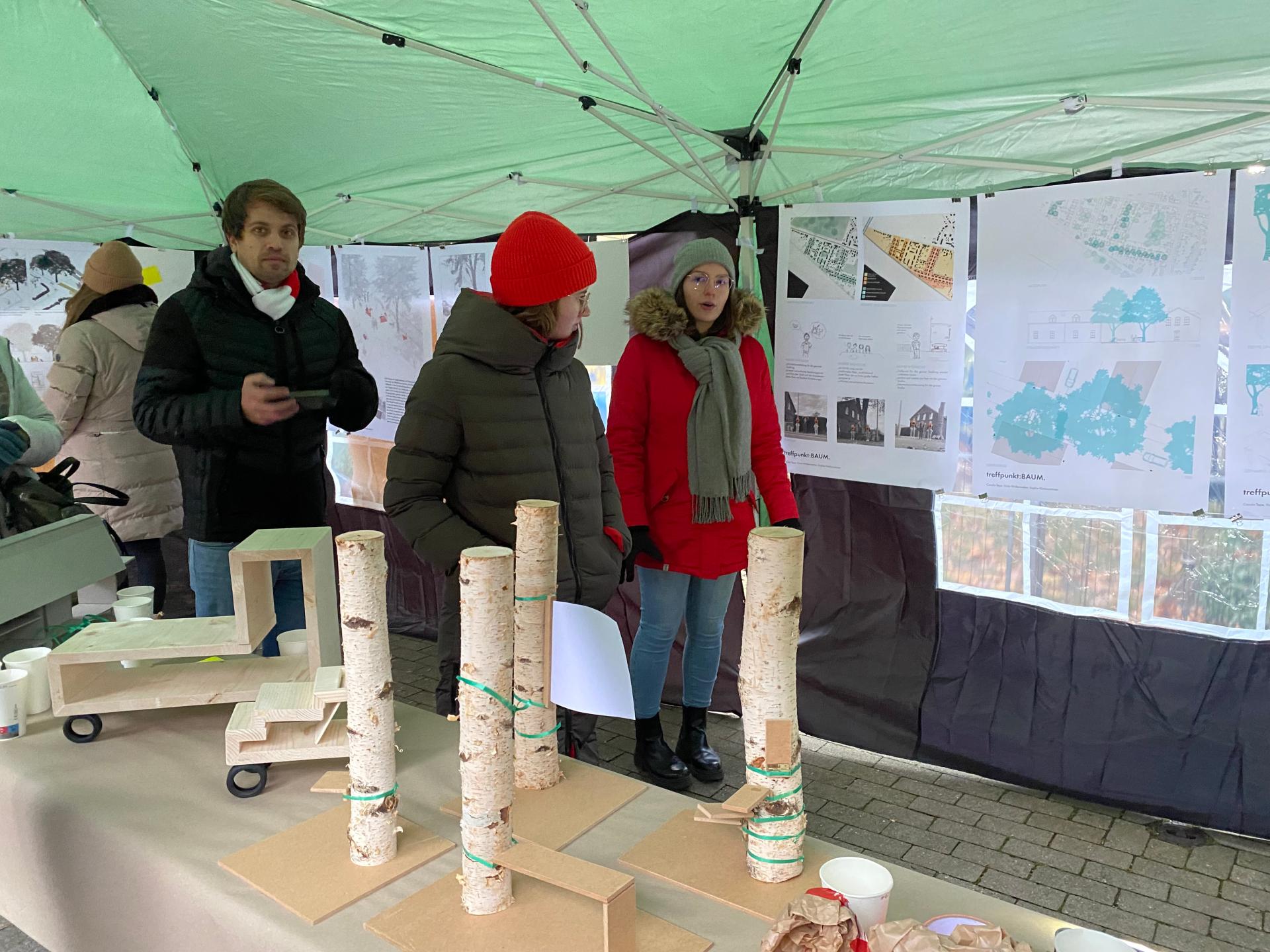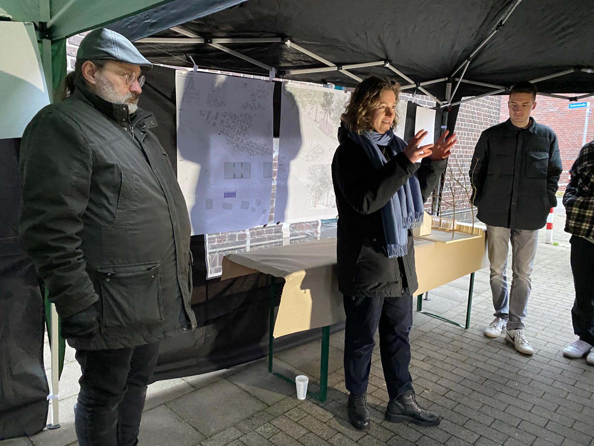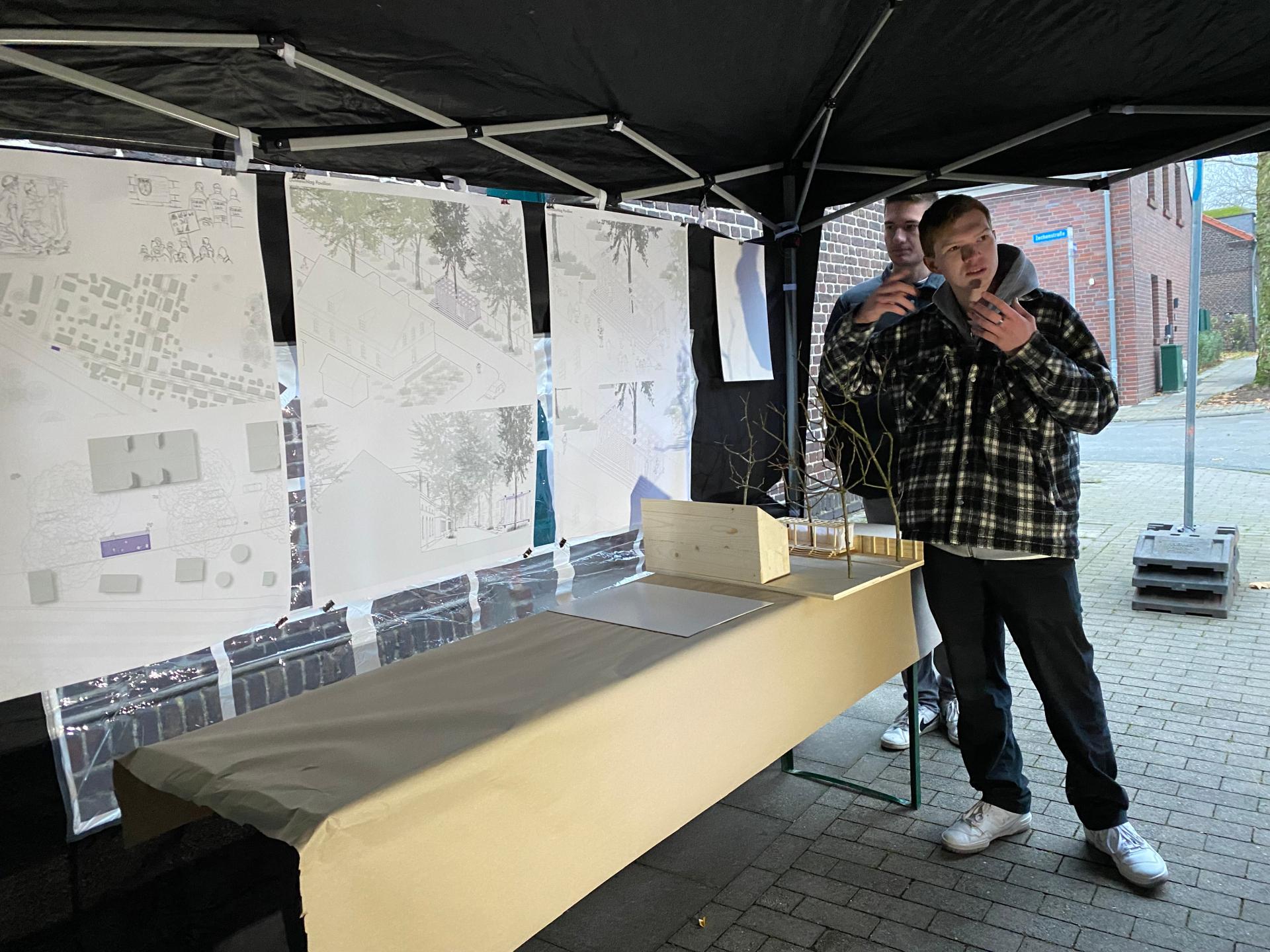 After the first dialog process with the citizens was completed in August 2022, a framework for further action could be developed. We, as the city planning office and monument authority, knew about the concerns of the citizens in the settlement and could thus react to them in a targeted manner. The first reaction was the student workshop in cooperation with the "Münster School of Architecture". As already explained, the students had the task of designing a new meeting place for the citizens in the settlement for one semester. After the winning designs have been selected in January 2023, the task now is to build one of the designs in the settlement and make it available to the citizens.