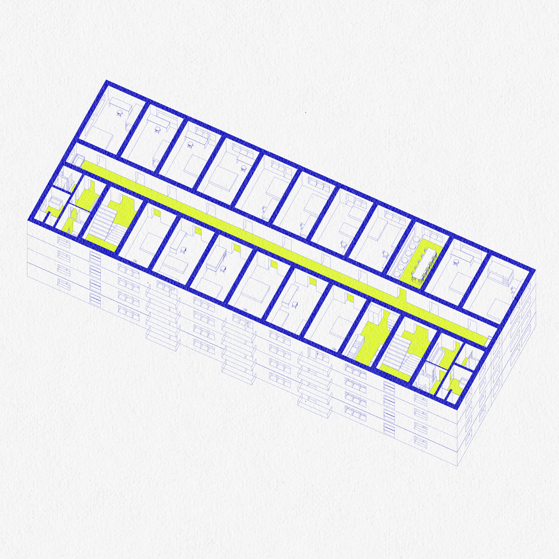 - Community-Centric Housing: Housing over 1330 people in a collective model creates a sense of community in individual units and communal spaces.