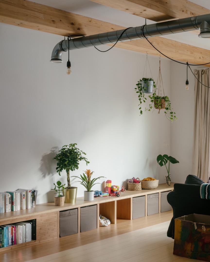 A generous terrace, linked with the collective dining space, leads to the shared garden via an organic staircase. A place away from the hustle and bustle of the street in front, a secluded and wonderful setting to relax, meet and play.