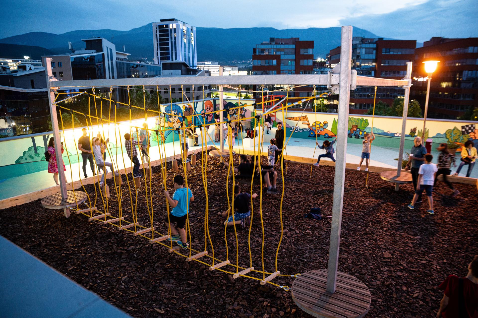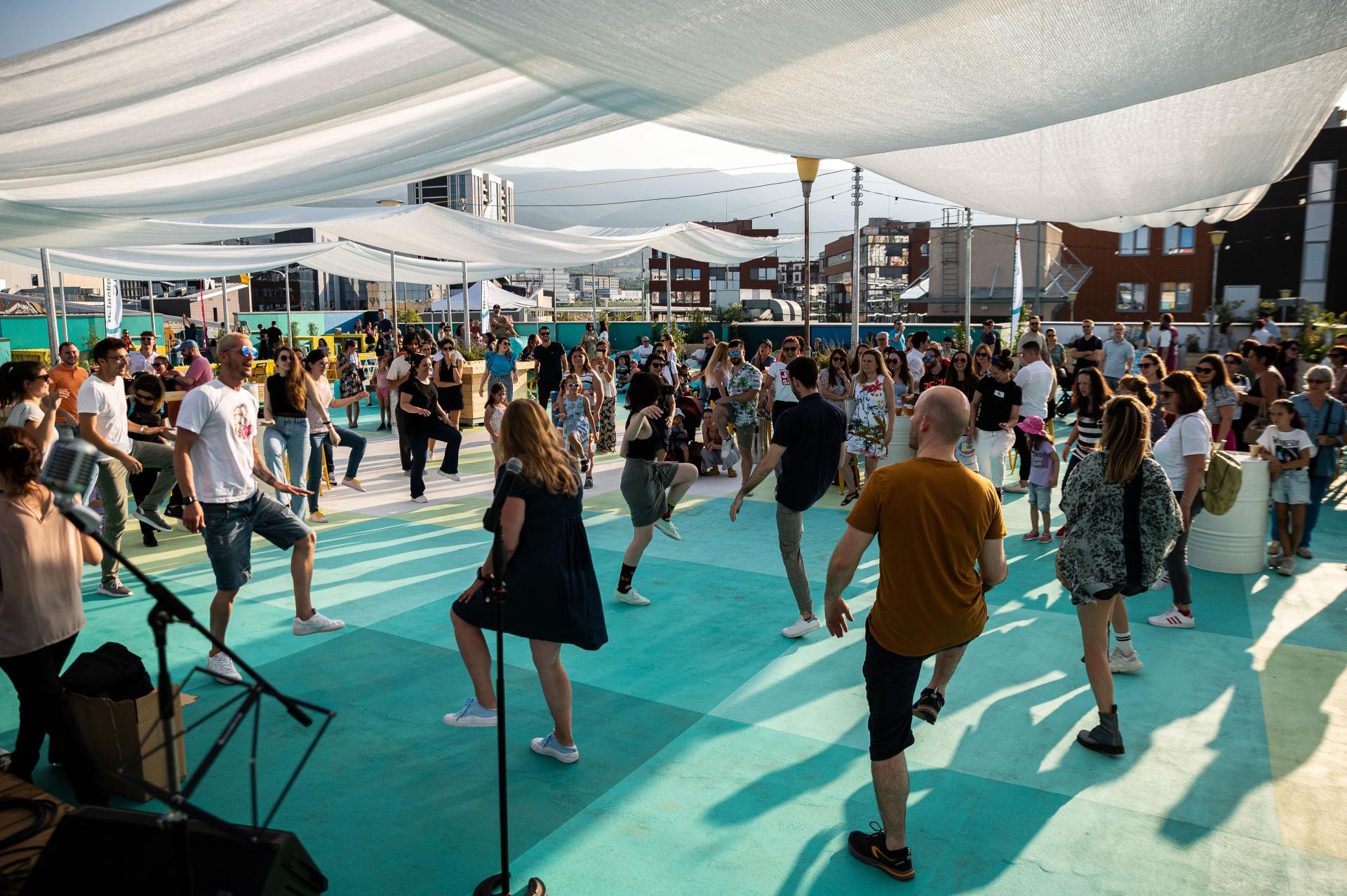 Concrete to Culture achieved a lasting transformation of a bare, underused 3,000 sq.m. concrete rooftop into active space for recreation, work, play, greenery, and culture. The project turned the entire office complex Business Park Sofia – one of the largest complexes in Eastern Europe – into open public space. Previously closed off to the public, BPS now welcomes diverse visitors and hosts varied activities promoting a sense of community. In the process, original designs and public artworks were created – notably the giant ground mural – that also redefined the entire peripheral borough of Mladost as a new urban cultural centre.