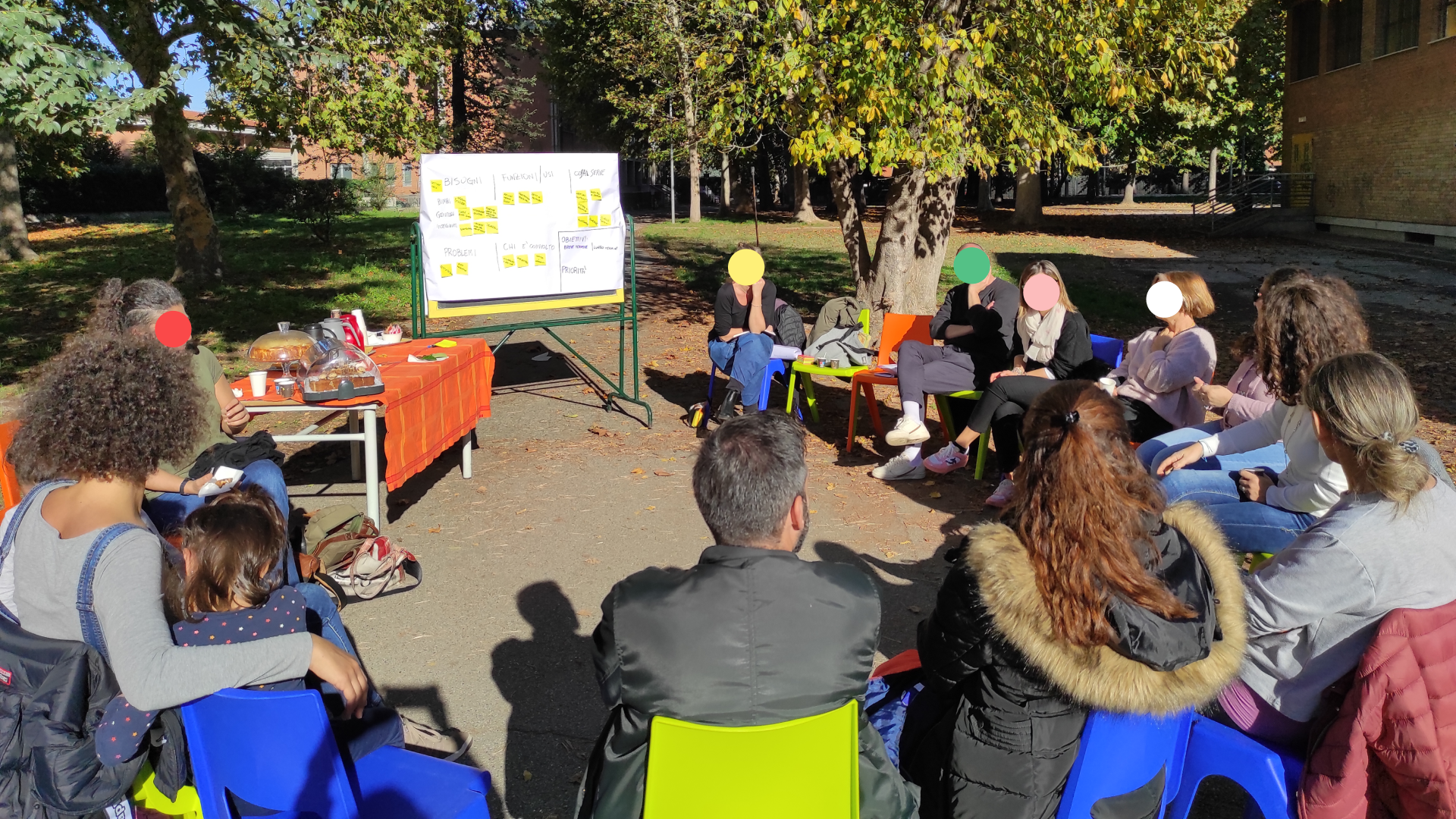 The project involved the parents of the children as well. About a hundred parents participated in the first PDP action. Subsequently, the project engaged with a smaller group of parents’ representatives, to kickstarted the process of setting up the working group that will continue assuring a public reuse of the schoolyard.