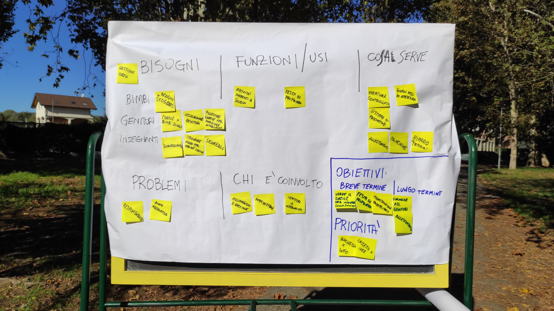 More than 100 parents took part in the project, mainly during the schoolyard parties. Through a PDP session, parents were asked whether they were satisfied with their schoolyards and, if not, whether they were willing to give support to transform them. On the basis of the collected adhesions, the group of volunteers was involved in a co-design session to lay the foundations of possible transformative interventions, in conversation and collaboration with both the teaching and administrative staff.