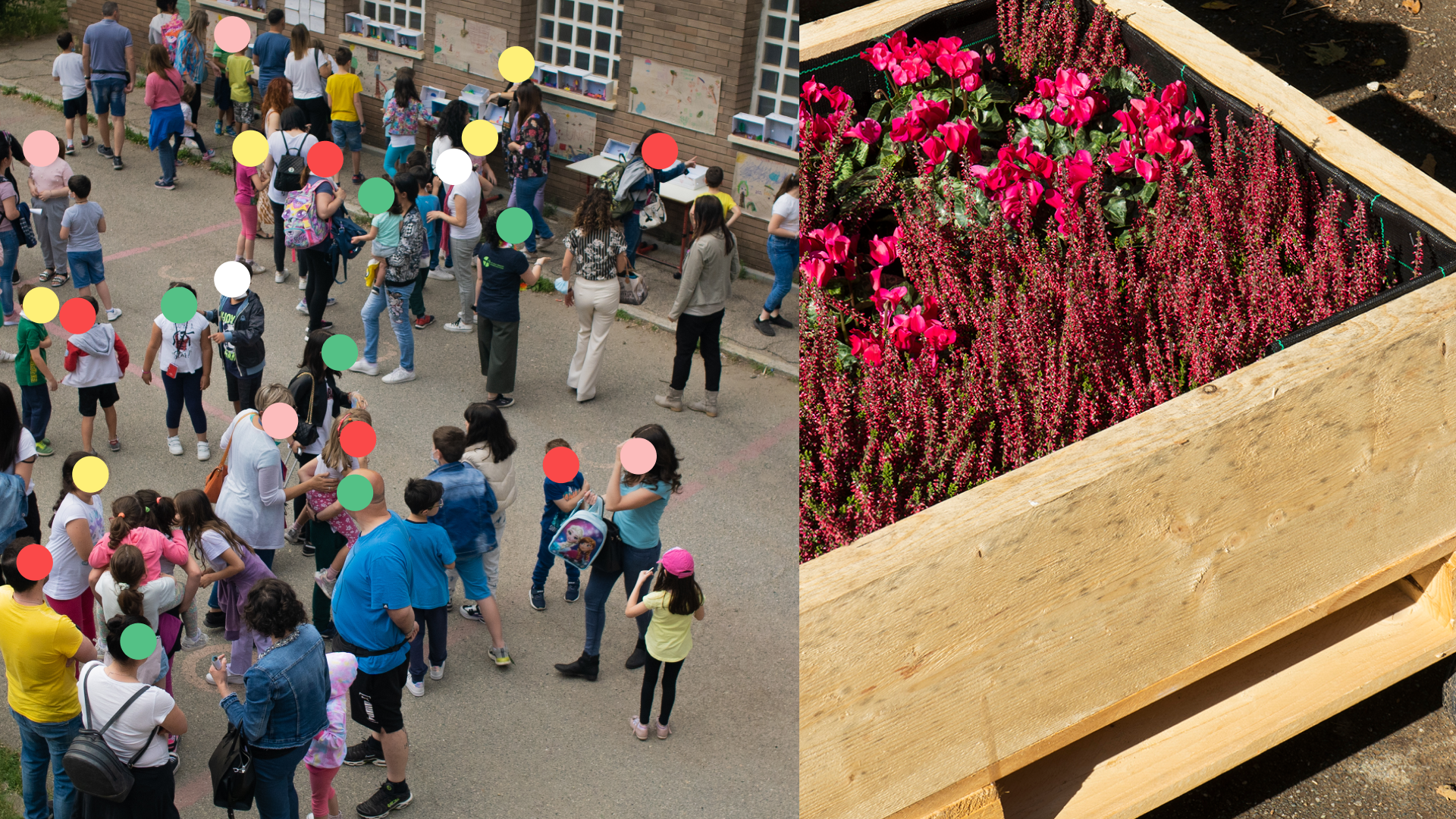 Participatory Data Physicalization interventions (see upcoming paragraphs on methodology) aimed to encourage children to think holistically and in post-anthropocentric terms, connecting their well-being to that of the environment. This fostered a sense of belonging and appropriation of the public space, as children felt part of the schoolyard, and felt the schoolyard as a part of their lives.