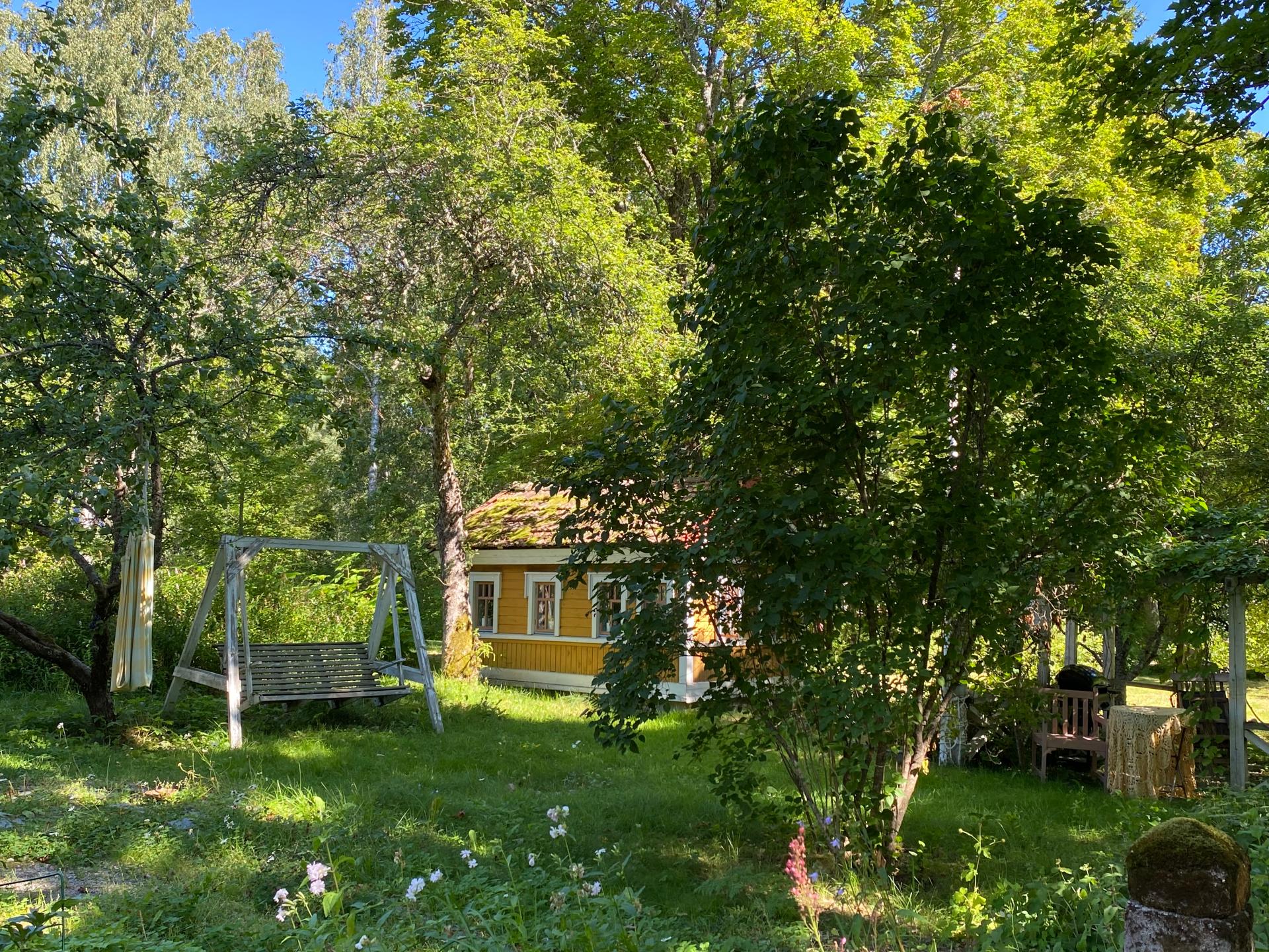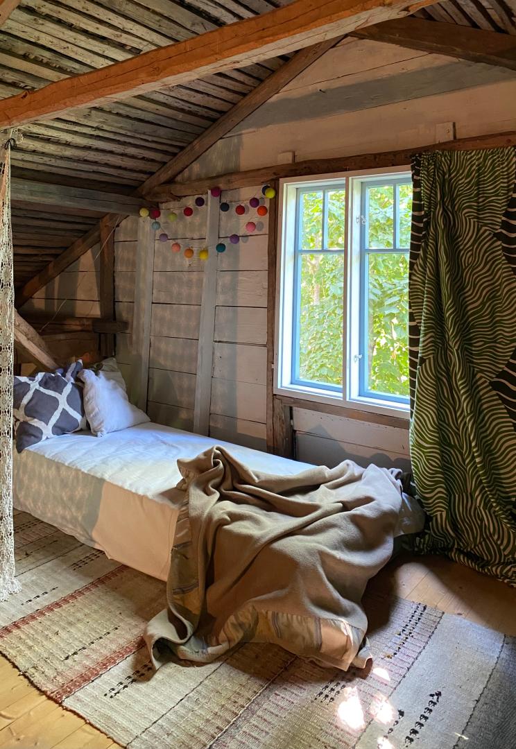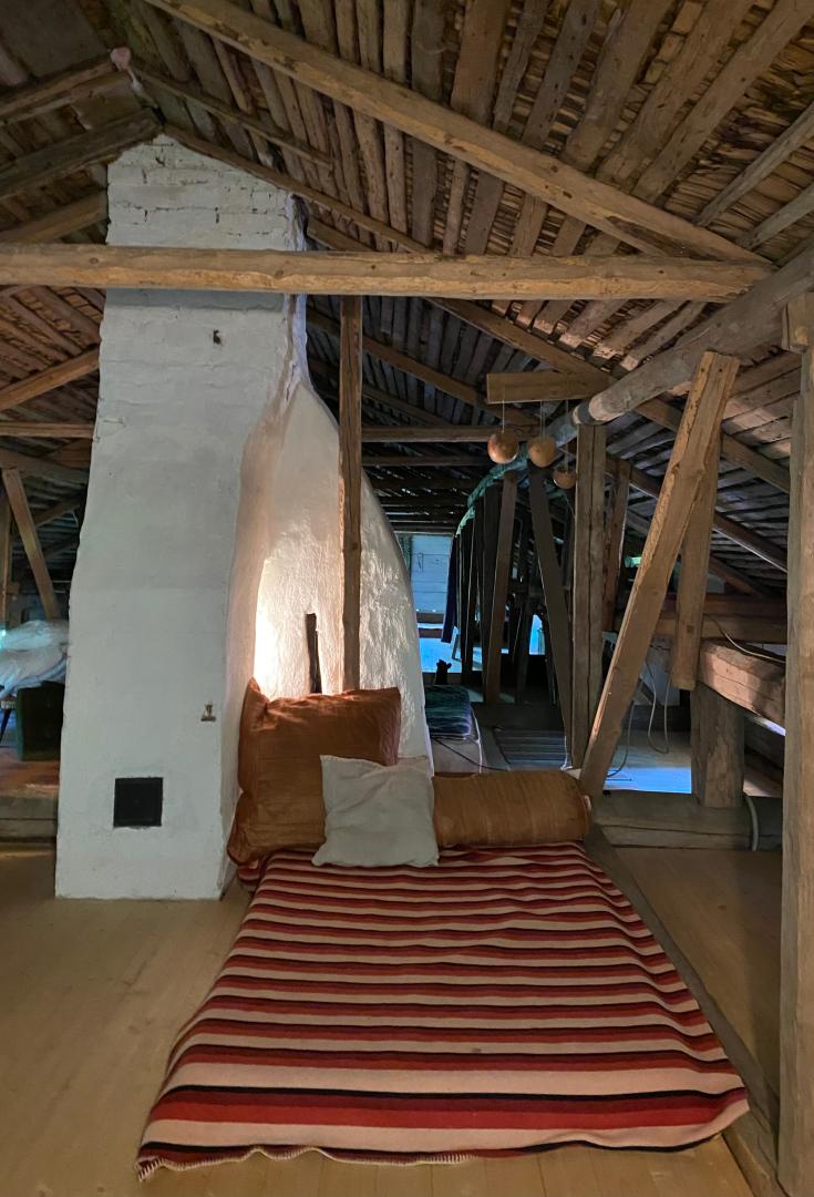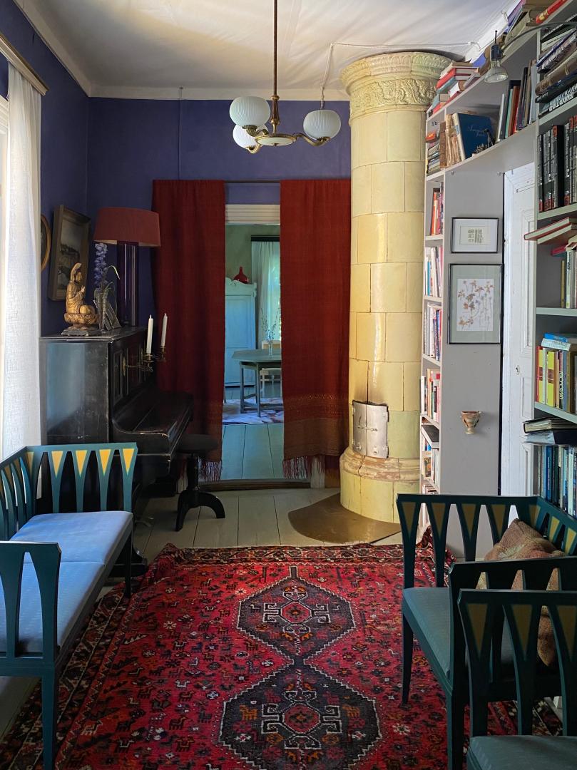 The third goal is to create a place that leads from the old rural milieu to a peaceful and slow life, physically and mentally. There is e.g. for meditation, the main building's salon with hand-painted wallpaper. The house has old farmhouse furniture, lots of art and old dishes. Among other things, in connection with meals, the aim is to tell about the cultural history of the place and objects.