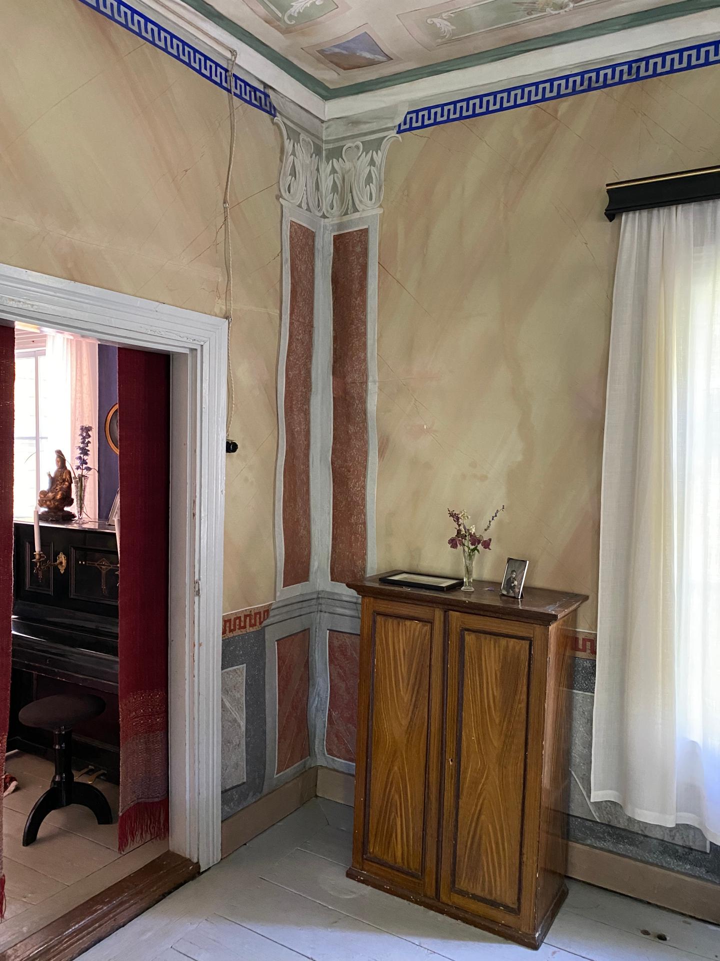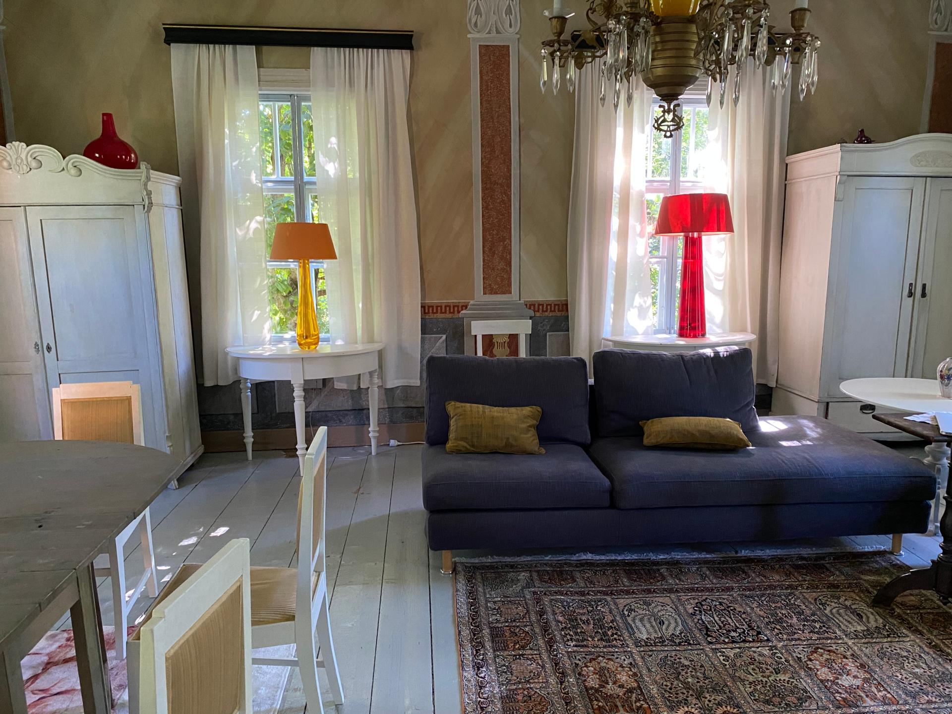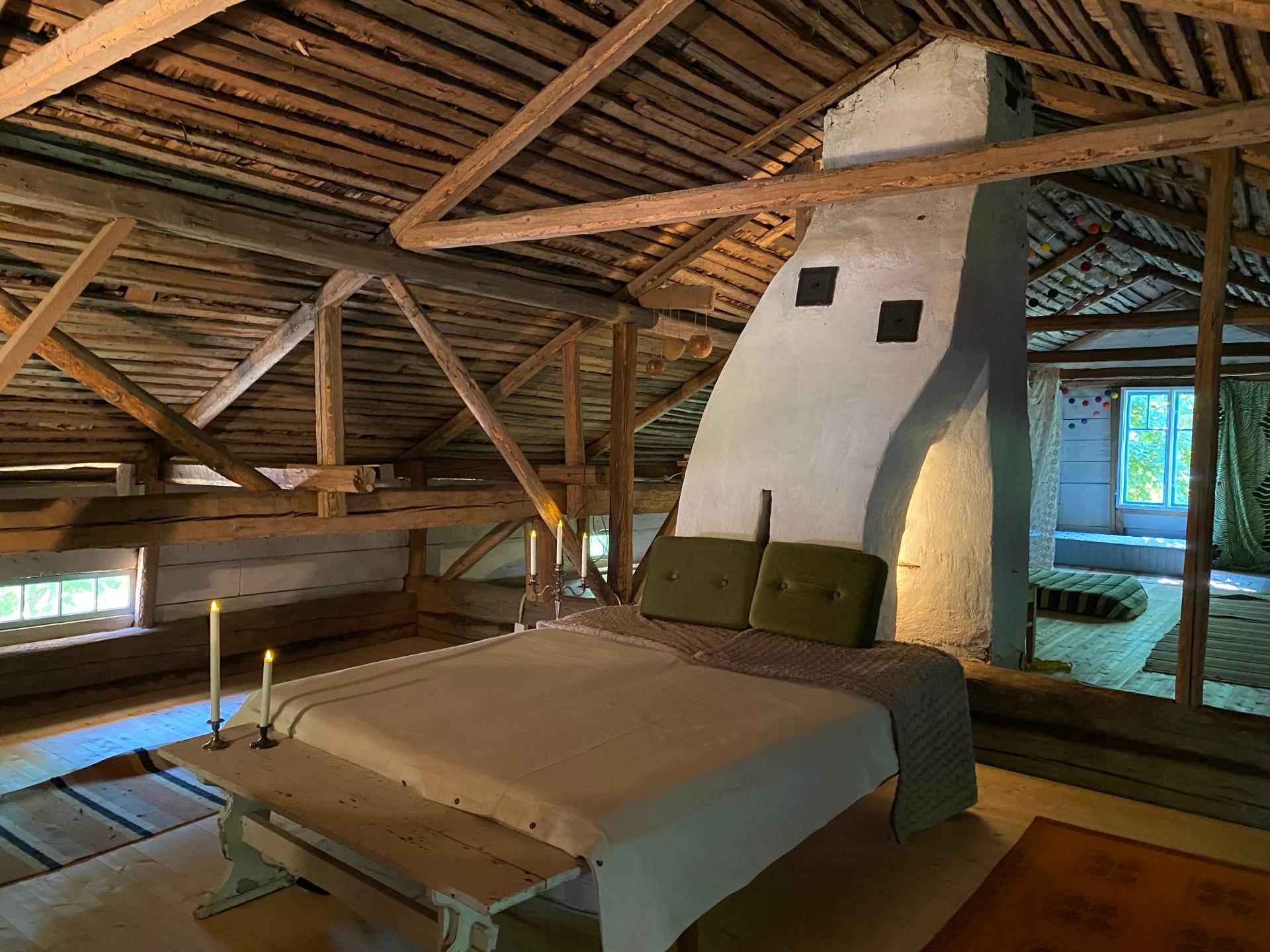 The third goal is to create a place that leads from the old rural milieu to a peaceful and slow life, physically and mentally. There is e.g. for meditation, the main building's salon with hand-painted wallpaper. The house has old farmhouse furniture, lots of art and old dishes. Among other things, in connection with meals, the aim is to tell about the cultural history of the place and objects.