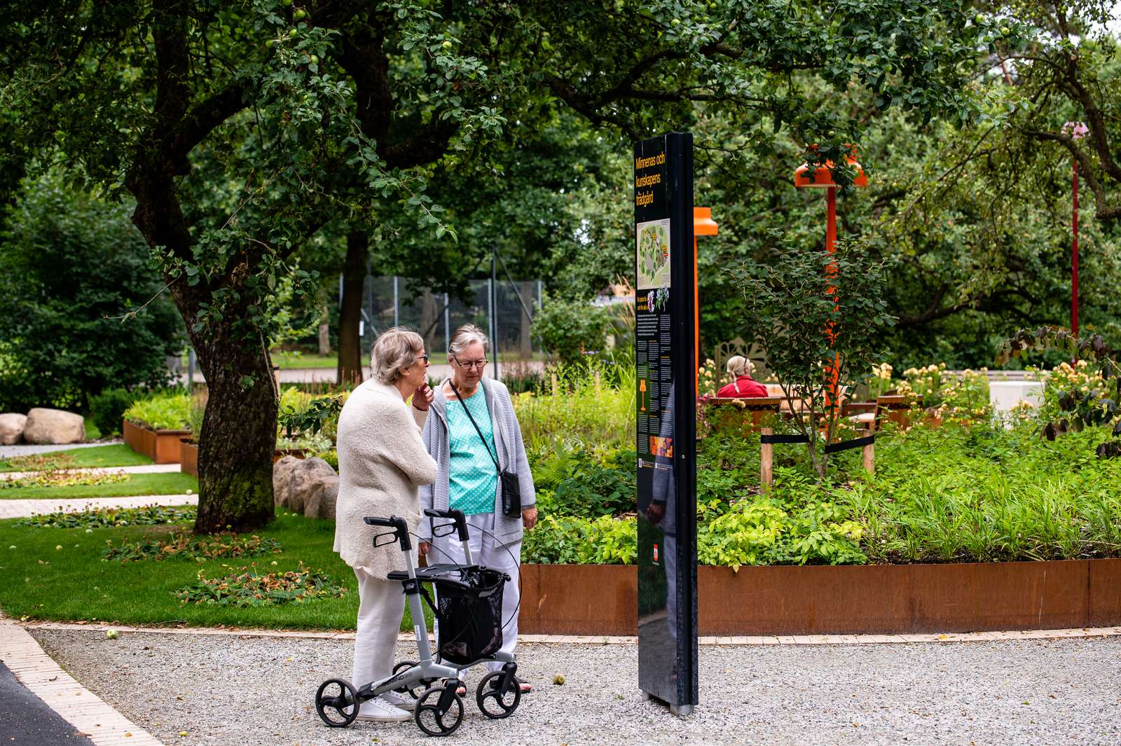 A goal we set early in the project was to create a dementia-friendly environment in a public park. The reason for this was partly to make people open their eyes to a disorder with a lot of stigma, and to make information about the subject more available. Another goal we have worked towards is to help people affected by dementia to get an earlier diagnosis. By creating this type of garden in a public park, our hypothesis is that we can work preventively and achieve proactive health care. In addition, it costs nothing to visit the garden, it is open and accessible to everyone.