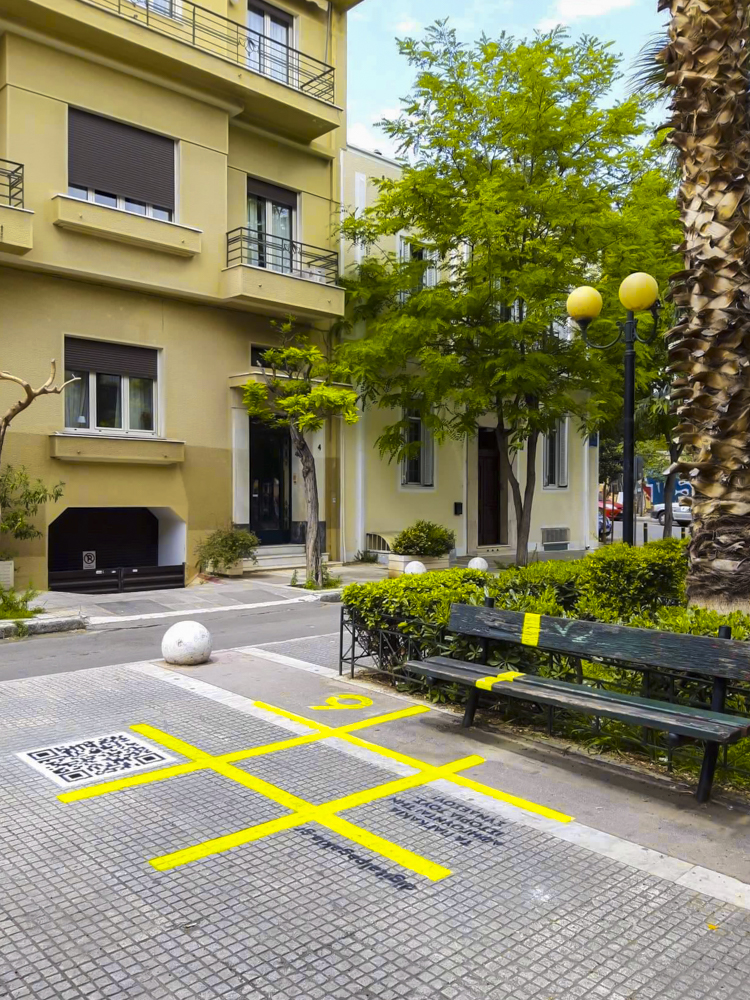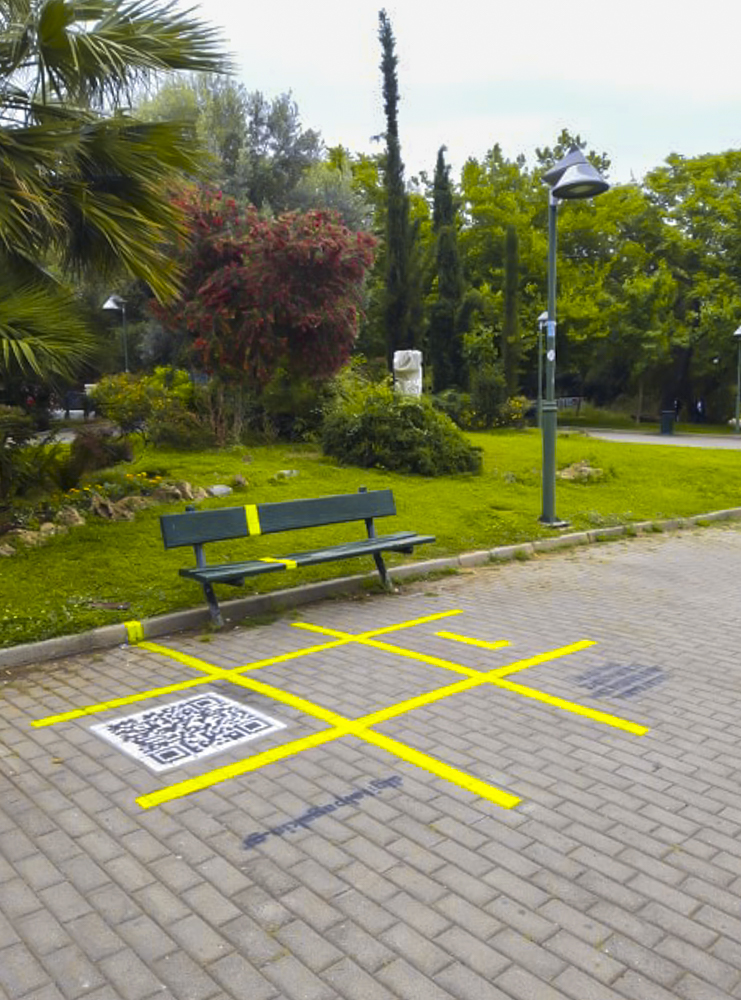 In a playful design manner, we communicated the intervention via identifiable physical spots -public benches- found in the central Athenian neighbourhood called Pangrati. Our design thinking was to make sure all passer-by will find out about the intervention by arousing their curiosity.