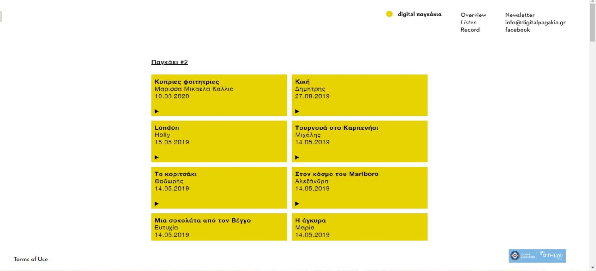 With the use of their smartphones, citizens can scan the QR code found on the pavement or simply visit www.digitalpagakia.gr. The user-friendly tic-tac-toe webpage’s design directs them to the easy steps of listening and recording stories.