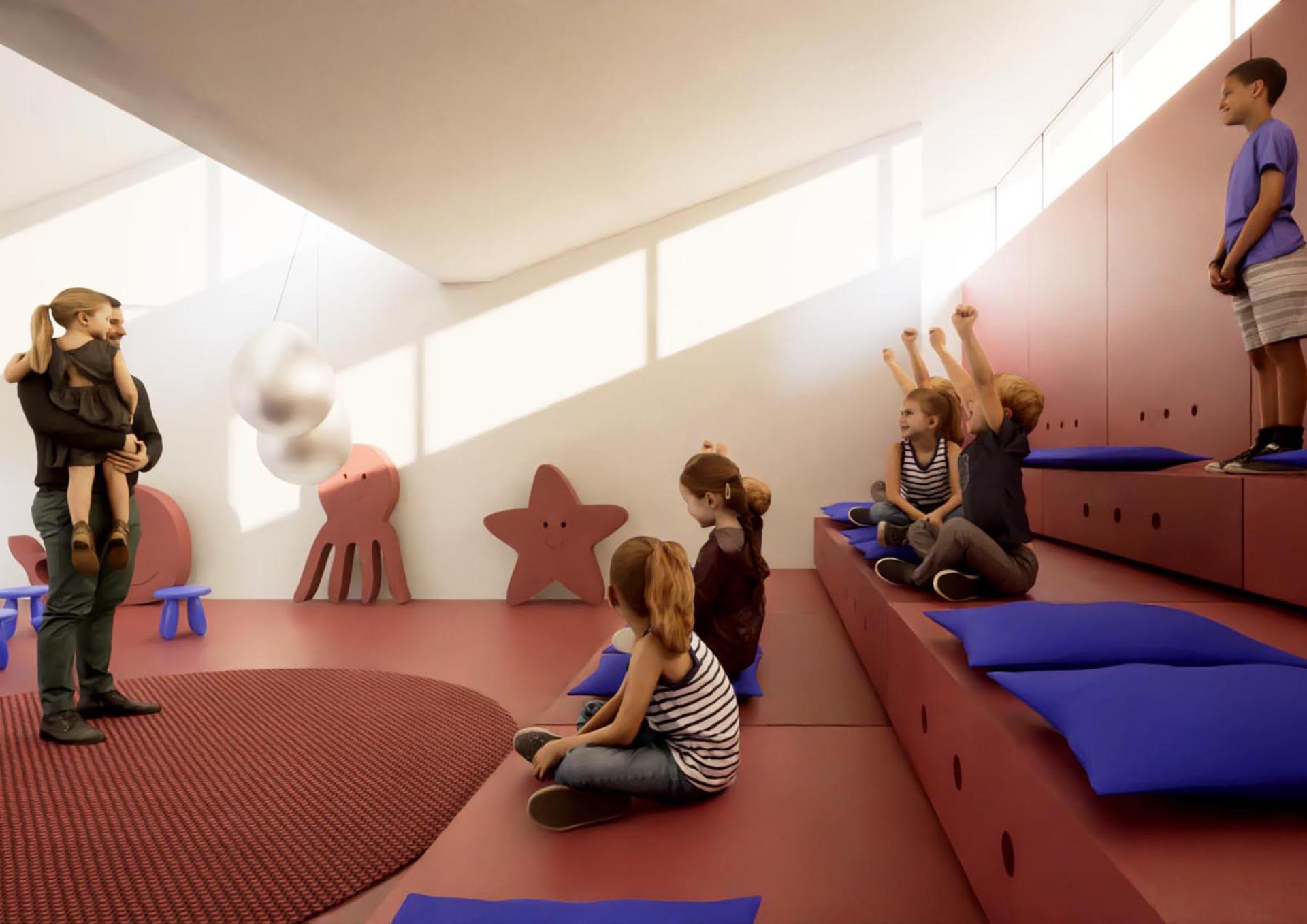 As a new building, the DND House will raise its visibility, transform its surroundings for the better, activate the public space of the neighborhood and becomes a community center. Its design and architecture are a reference to the local industrial heritage, providing it with new facilities and imbuing it with new meaning. The space is designed to meet the specific needs of children with the aim of creating a safe and stimulating place for the development of children's (civic) participation and creativity. With the construction of the new House, the role of the SOC will become inseparable from the future life of the local and regional community.