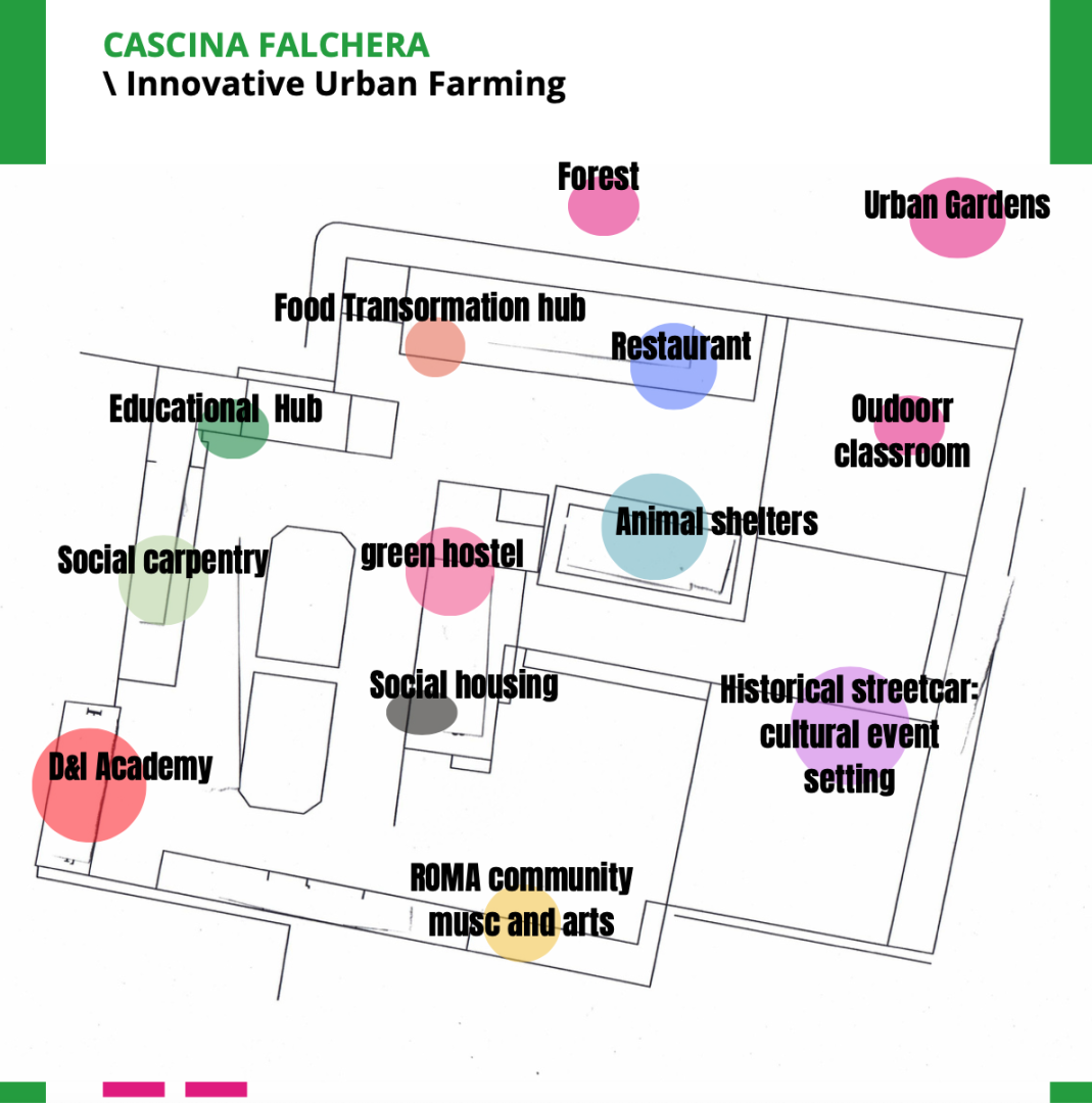 Cascina Falchera is a social and environmental innovation hub that intends to give back to the local peri-urban communities a physical and research space on the themes of ecology, social innovation, rural environment and sustainable agro-food supply chains. The Cascina, while remaining an innovative educational space for the regional school system that used to be in the 1990s, is now being reimagined as an innovative eco-cultural third place: a community centre open to the citizens, a place of cultural events, a place for research and experimentation, a home to professional micro experiences of sustainability and social economy.