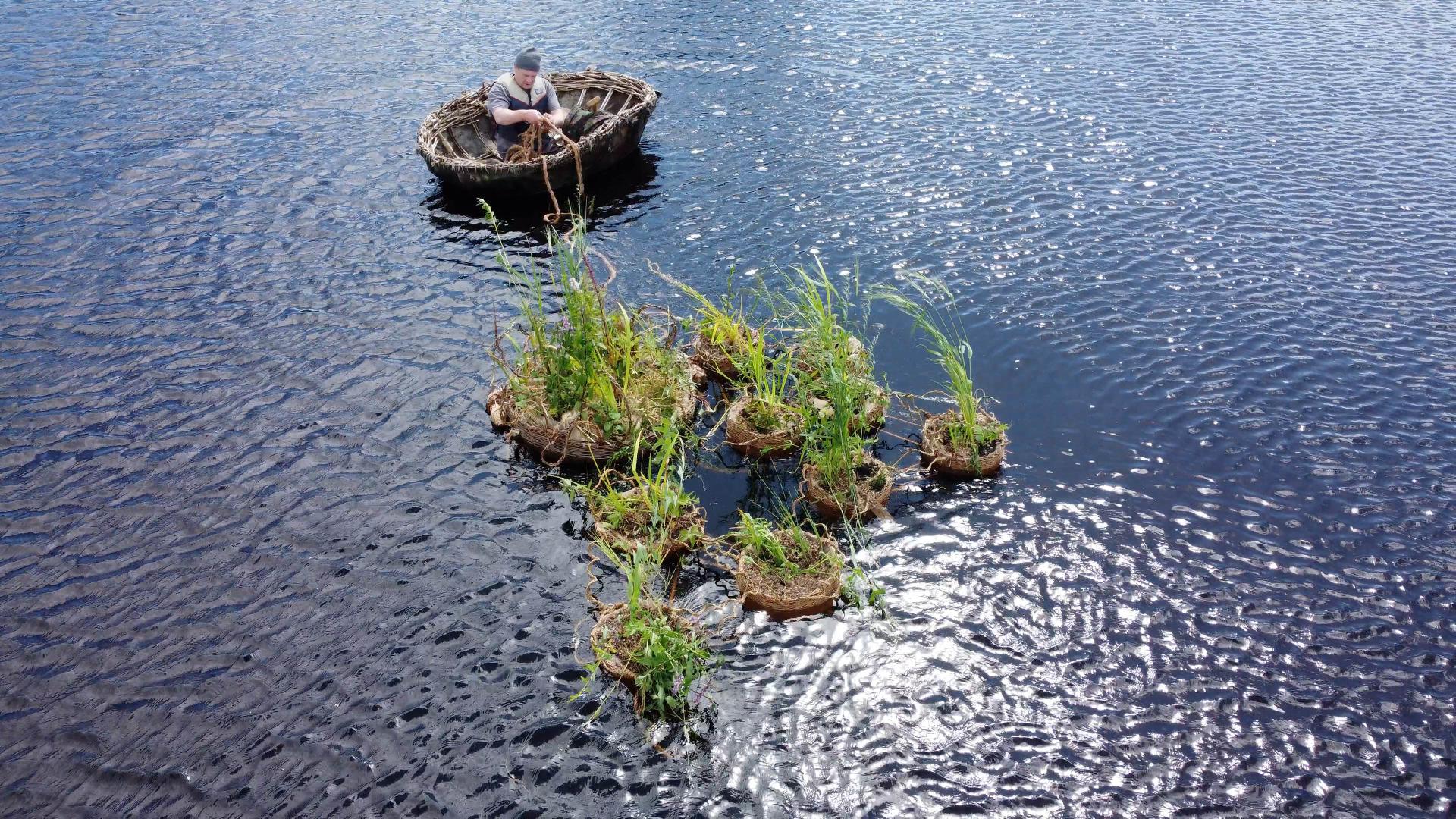— In Dromineer, County Leitrim our collaborating artist Christine Mackey worked with a gardening group to build floating islands with indigenous plants in willow baskets. The participants gained artistic skills and scientific knowledge, and took part in workshops leading to increased social cohesion.