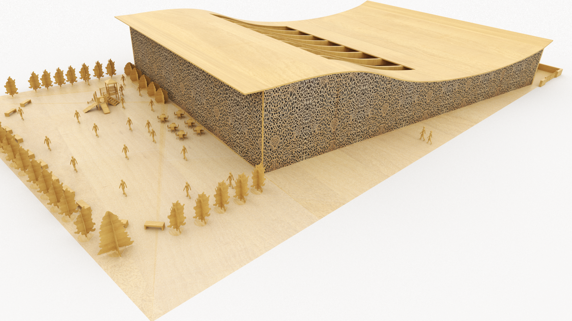 THE BUILDING WILL BE USED 7 DAYS A WEEK WITH DIFFERENT TYPES OF EDUCATIONAL AND ENTERTAINMENT ACTIVITIES AND WILL ALSO HAVE A CENTRAL SQUARE WHERE THE SURROUNDING CITIZENS CAN VISIT, INTERACT AND ENJOY A CONTEXT FULL OF NATURE, ARCHITECTURE AND MUSICAL CULTURE.