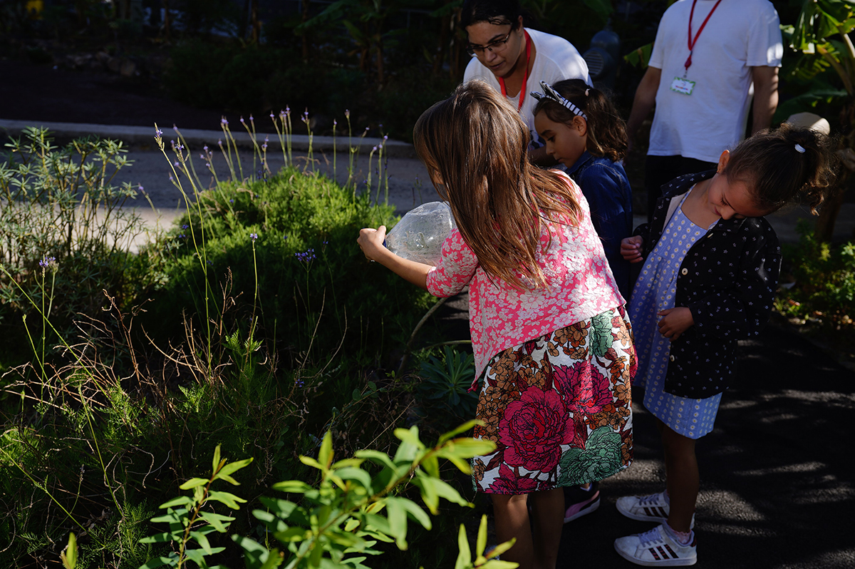 > It provides the Cabo Llanos neighborhood the capital of the Tenerife island with its first green public space. In this urban oasis in a harsh urban area, diverse groups of people reconnect with nature; they can simply rest or walk in nature, escape from the heavy traffic and listen to the sound of the insects and birds, breathe a cleaner air, smell the flowers, pick some bananas or they can visit the art exhibitions in the Espacio and participate at the weekly activities in the Garden.