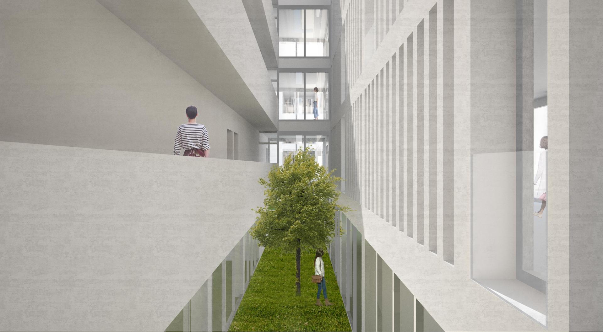 The buildings of the project differ between those used for public functions and those used for social housing. Different types of functions are included in order to create a balanced functional mix, which could be attractive for the whole neighborhood.