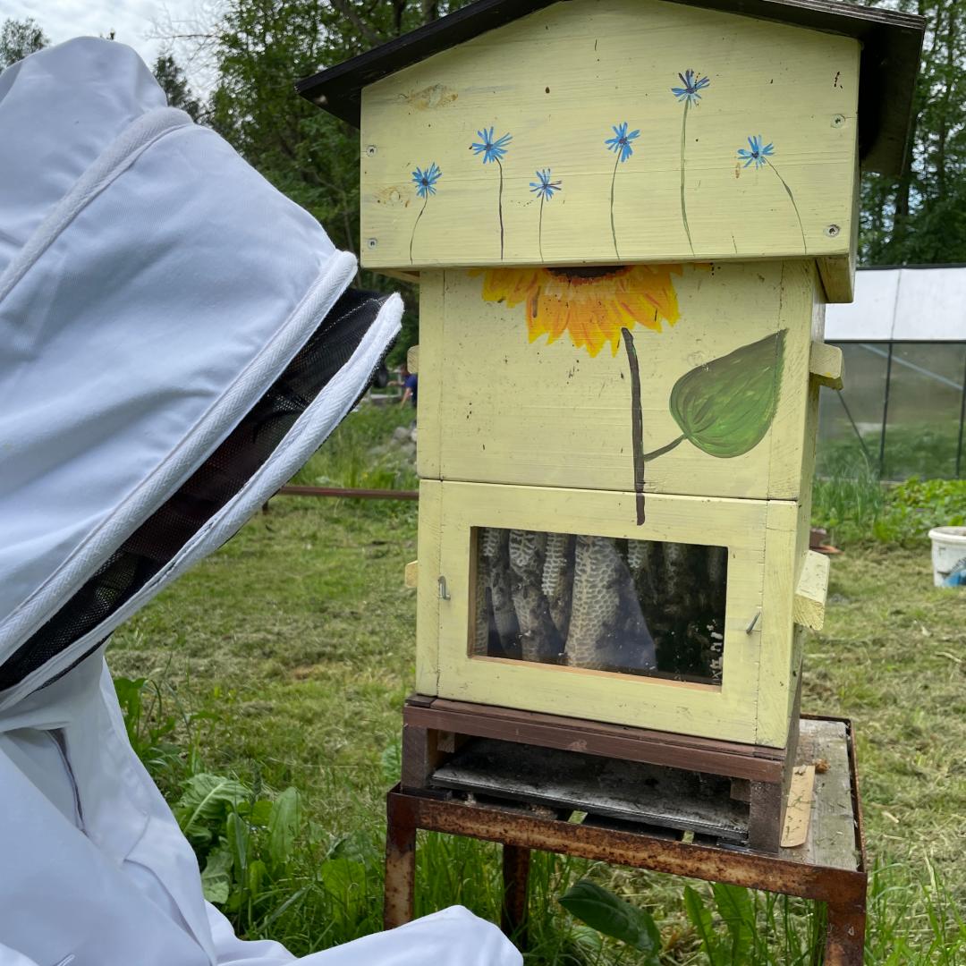 The excursions are particularly special because they take place in the Apihouse, they have a comprehensive and individual approach and during them it is possible to get to know the life of bees in several different types of hives. A photographic record is made of the entire excursion, so clients often take away 50 photographs as a souvenir. At the same time, the owner, who guides the excursions, is a certified apitherapist and a graduated beekeeper (SOUV Nasavrky). She also has a university degree in pedagogy and psychology, supplemented by education in Zootherapy for children with PAS and Zootherapy in general. This allows her to engage all age groups in a non-violent way, including children with different needs. Her husband is a trained beekeeper, which guarantees qualified information not only about the life of bees, but also about beekeeping. People who are interested in beekeeping have the opportunity to be trained on our farm and to get a beehive with basic equipment. We also help them to get started with advice over the phone, online or in person. So far we have "educated" about 36 new beekeepers and even older beekeepers are inspired by us. Likewise, children often get into beekeeping groups after our excursion and continue to learn about the life of bees.