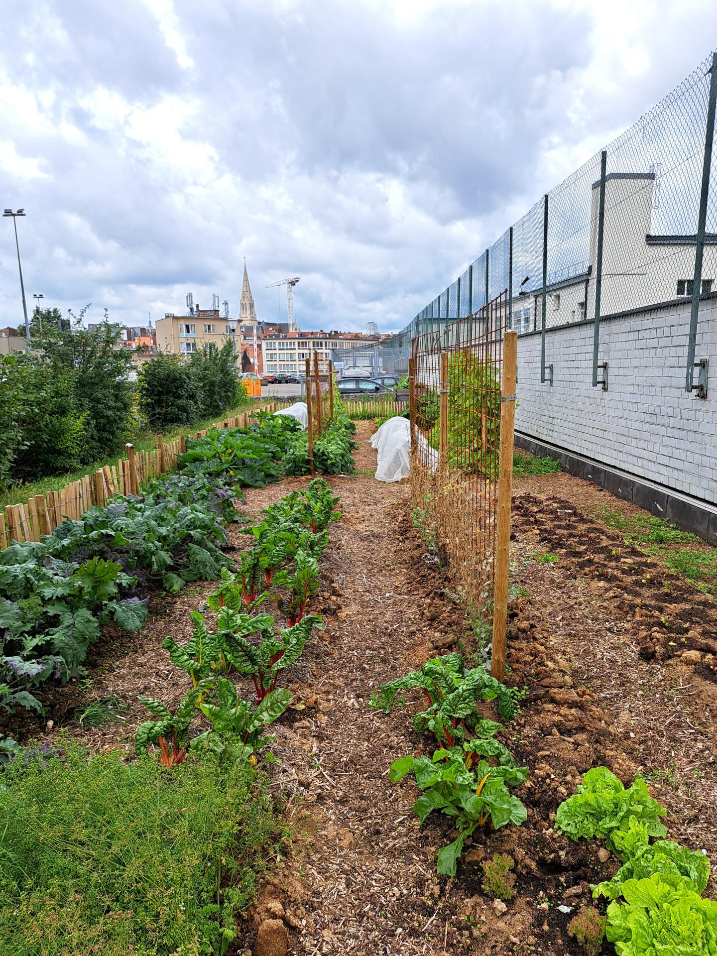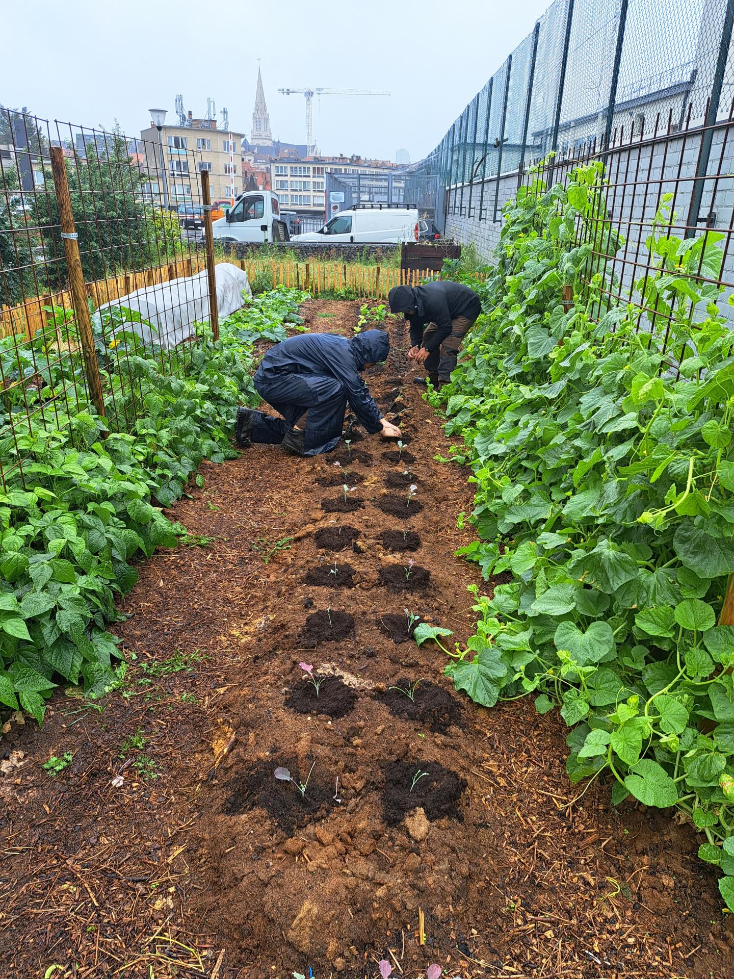 After months of work, we successfully converted 500 sqm of underutilized green spaces into vegetable gardens in three sites across Brussels. Workers with disabilities employ innovative living soil cultivation methods, which involve mulching to create a living soil, reducing strenuous soil work, weed management, and water usage.