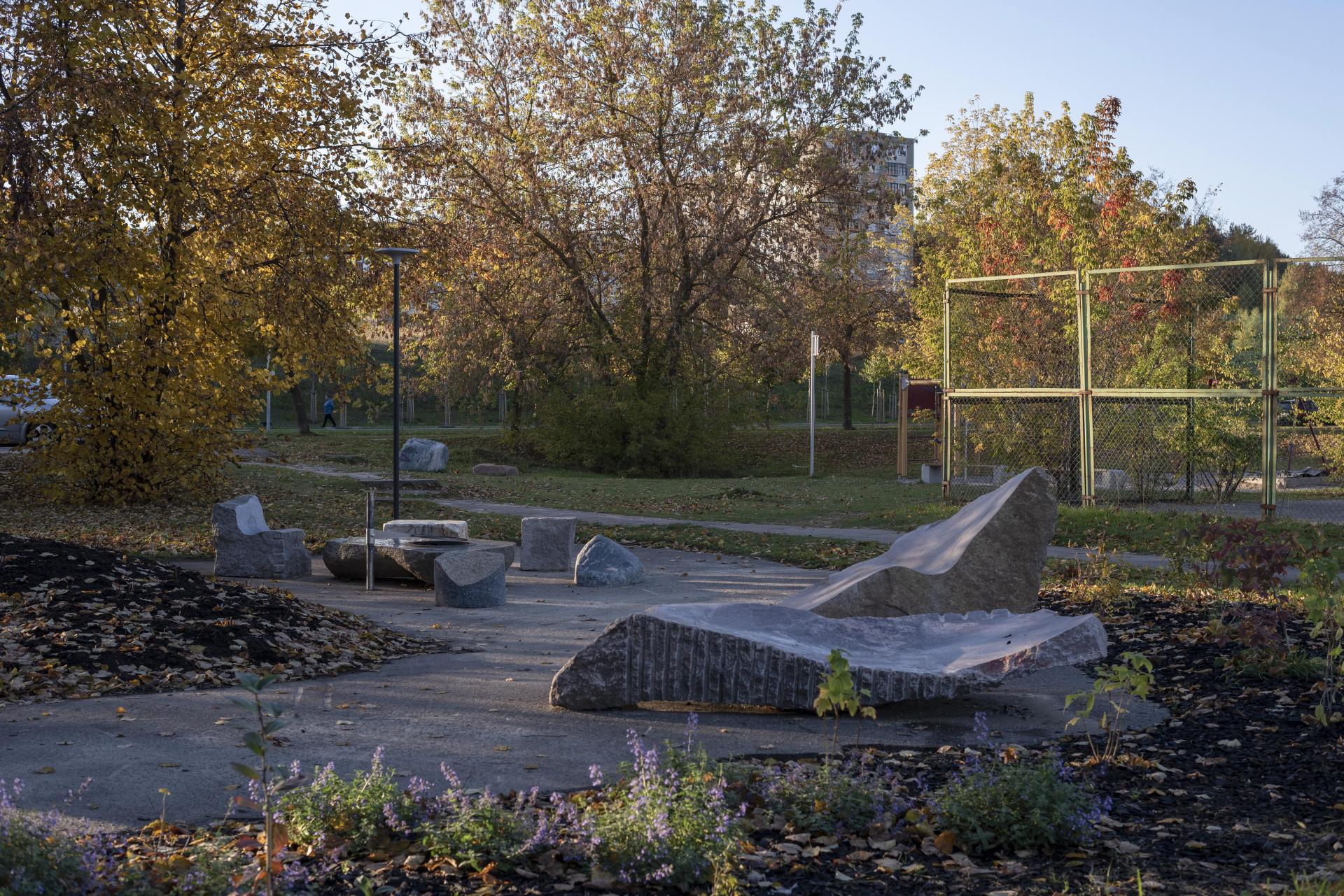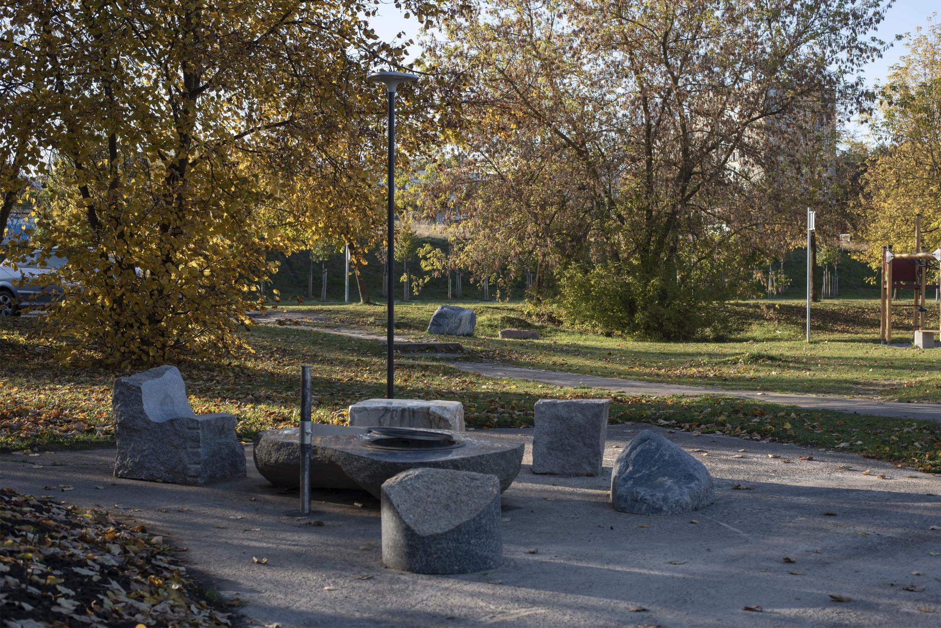 Contemporary cities face unprecedented pressure to rethink the ways they operate, especially those that have a large percentage of the Soviet-style building stock lacking public amenities that would draw community members together. Fabian’s Living Room, a new sculptural outdoor space located in one of the sleeping districts of Vilnius creates a new welcoming and sustainable social context for neighbourhood meetings around the public grills and other urban furniture made out of reused stone.