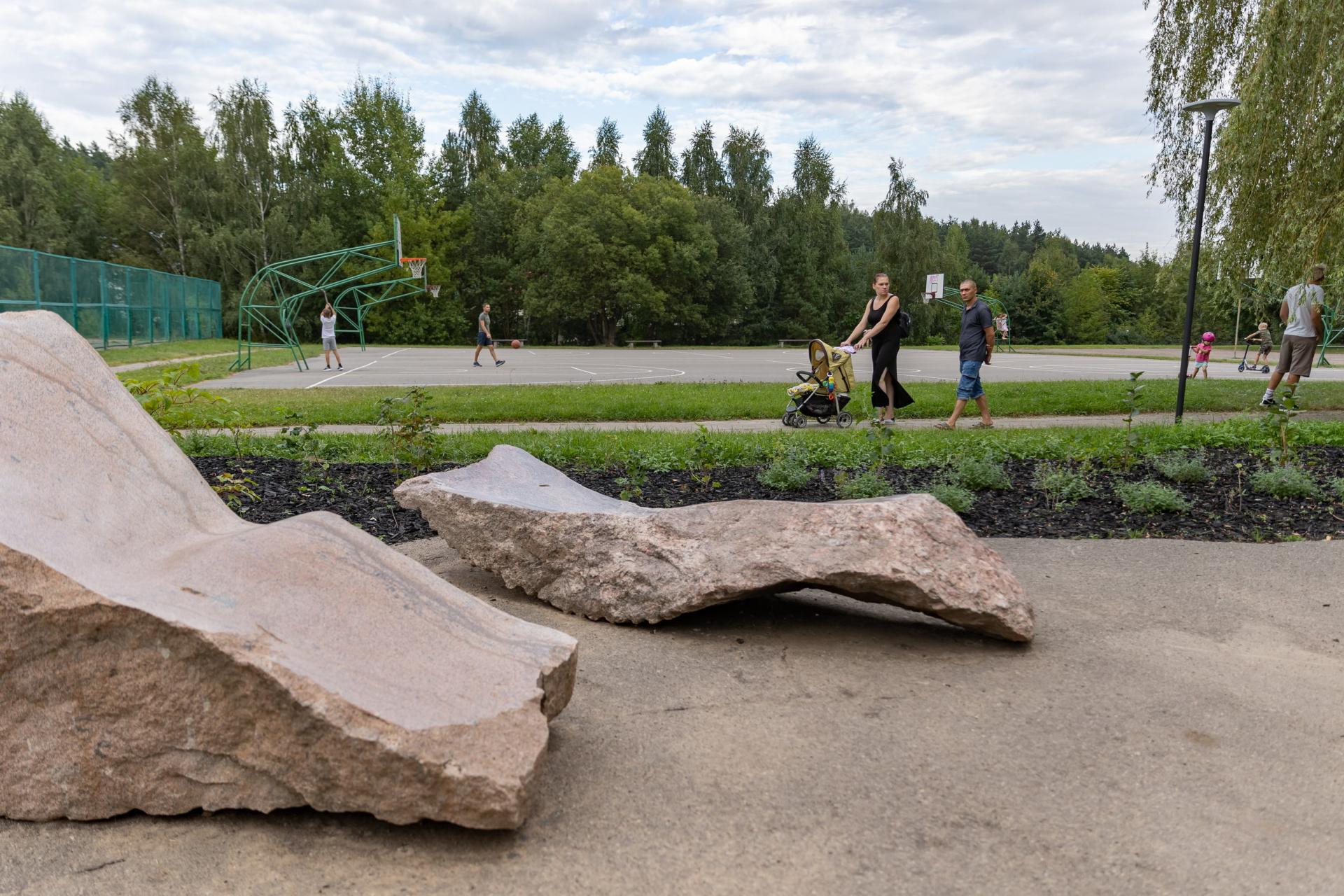 Seeking sustainable solutions during the construction phase was key to the project. Apart from replacing hard surfaces with greenery that adds a new layer to local biodiversity, new elements were designed from long-lasting material, stone, found in the quarries in the proximity of Vilnius. We have also tried to reduce the amount of transportation when transferring materials from different locations to the project site. Installing self-sufficient lighting systems run by solar power sets an example of using sustainable resources in the city.