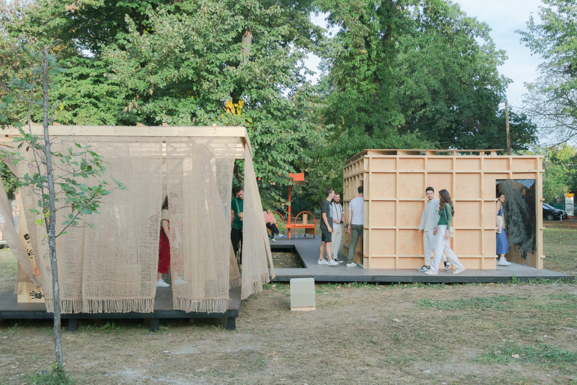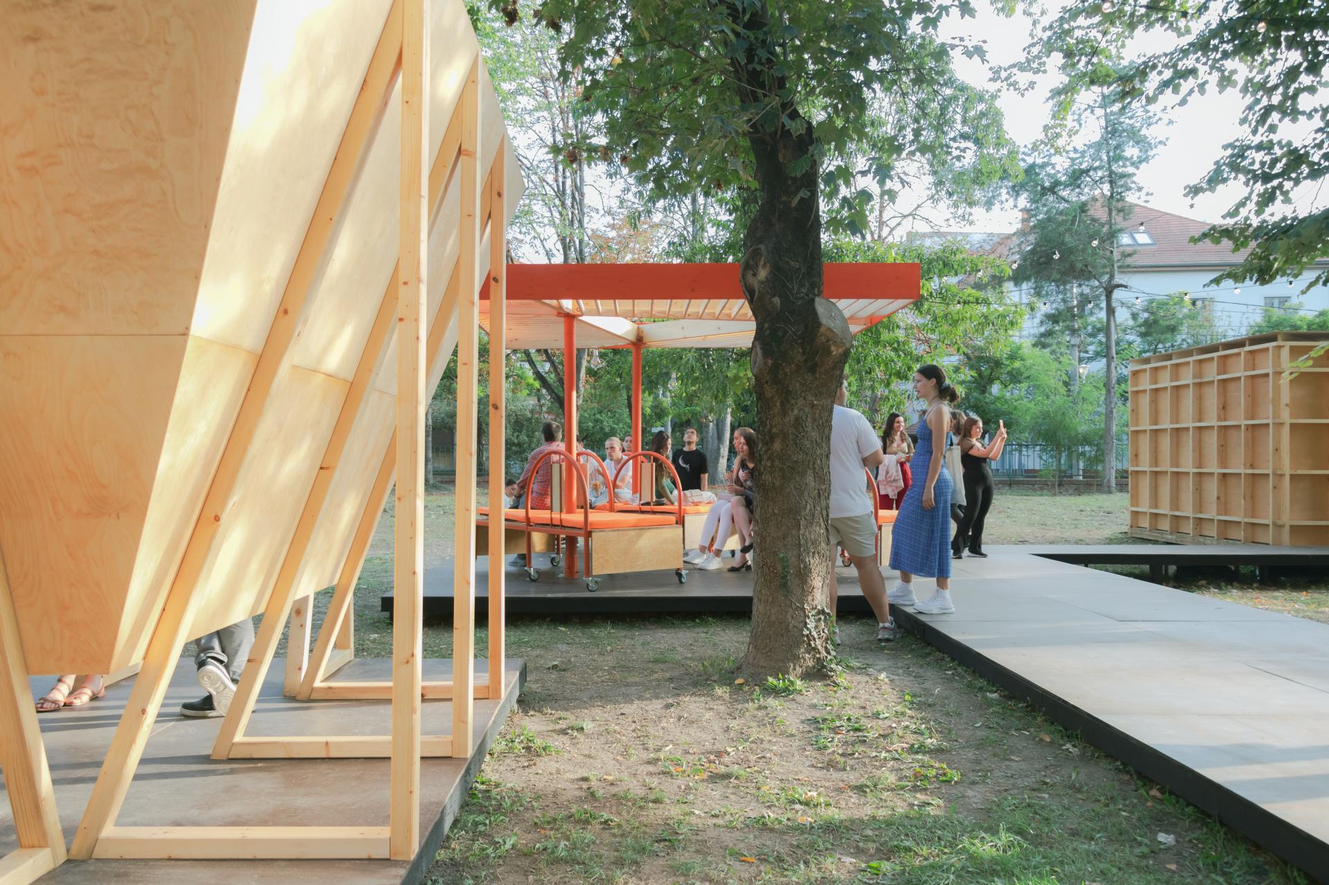 After the July workshop, a two-month period followed in which tutors collaborated online with students on technical details and execution steps. Suppliers were contacted and material orders were placed. In September, an eight-day co-making period took place, when pavilions were built by students and tutors, together with the help of different stakeholders. The phase ended with a series of public events, giving local and international guests an experience of the pavilion in the cultural context of Timisoara as European Capital of Culture in 2023.