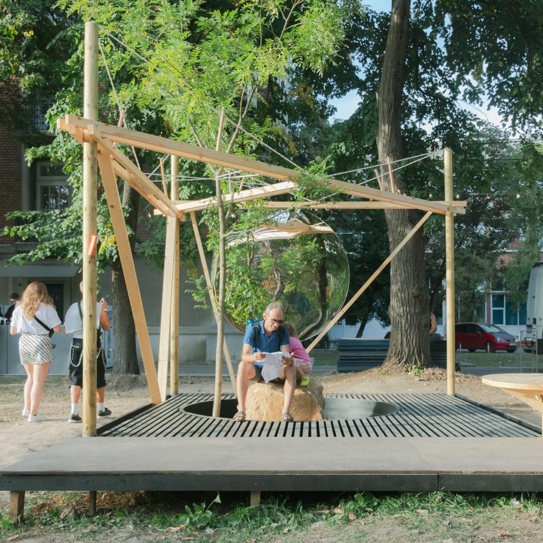 Emphasizing the motto "leave no one behind," the #activation section fostered a collaborative process involving students and tutors jointly crafting a pavilion with five themed modules. This collaborative partnership is deemed essential as it serves as a catalyst for transformative change. The approach of co-creation can be replicated as it does not only activate communities, but also elevates individual dignity and enhances the quality of design processes and outcomes, particularly relevant in the Romanian context.