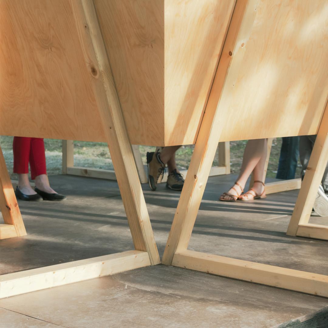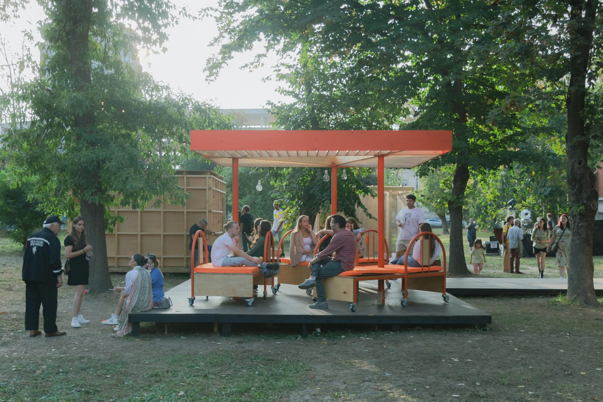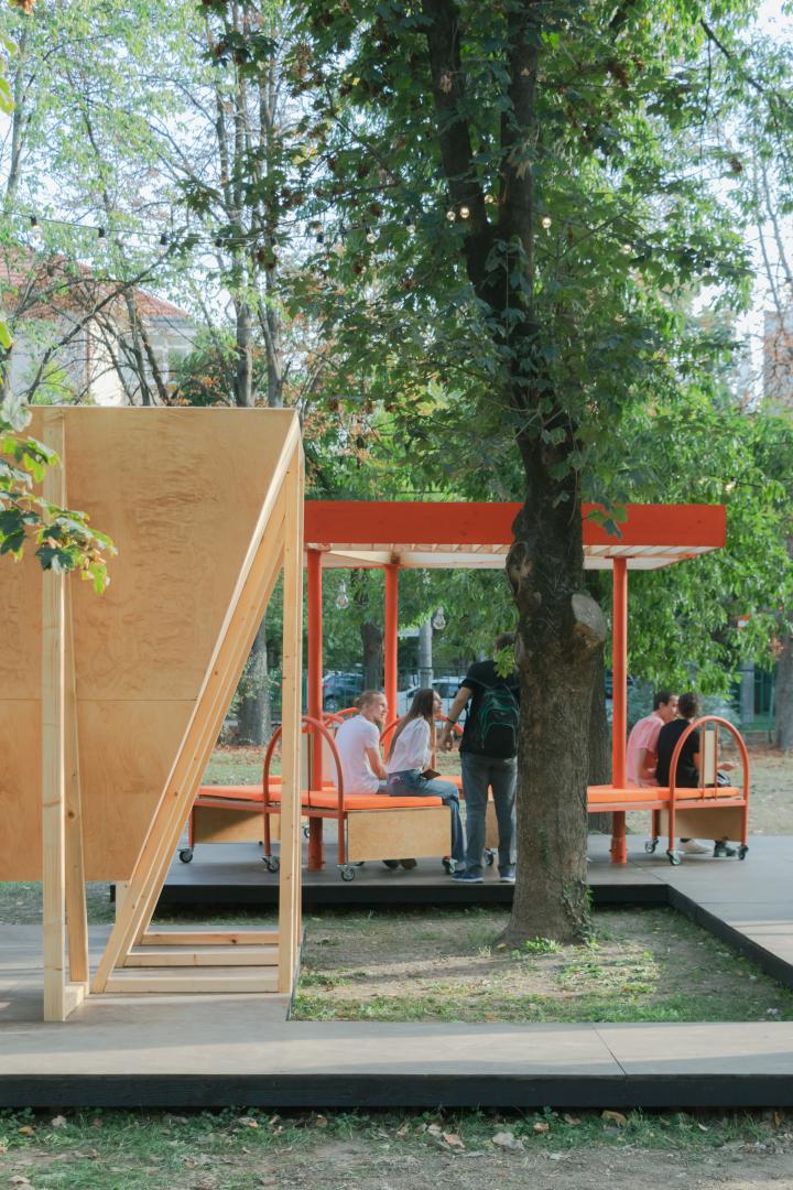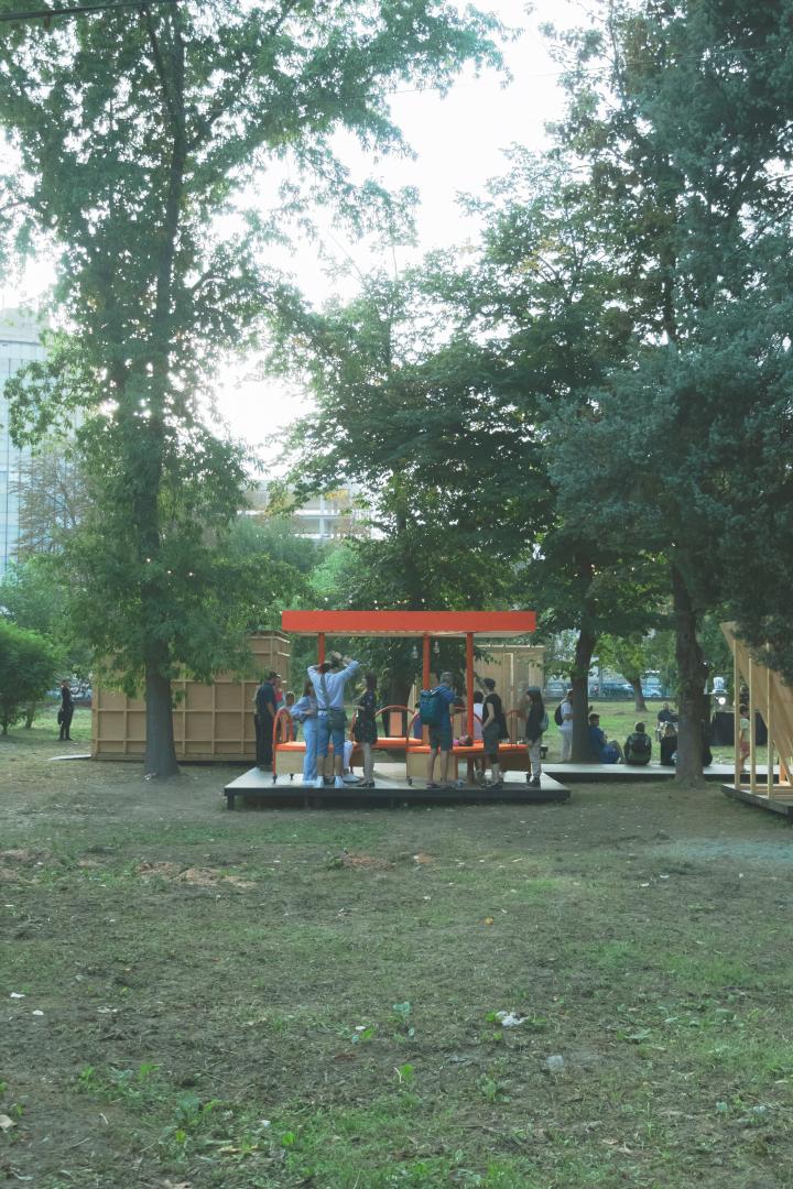 Local stakeholders, such as the Faculty of Architecture and Urbanism from Timișoara and the Politehnic University of Timisoara, were in charge of coordinating logistics, overseeing the construction of the pavilion on-site, organizing events (inauguration, concerts, discussions), and ensuring its maintenance for a period of 5 years.