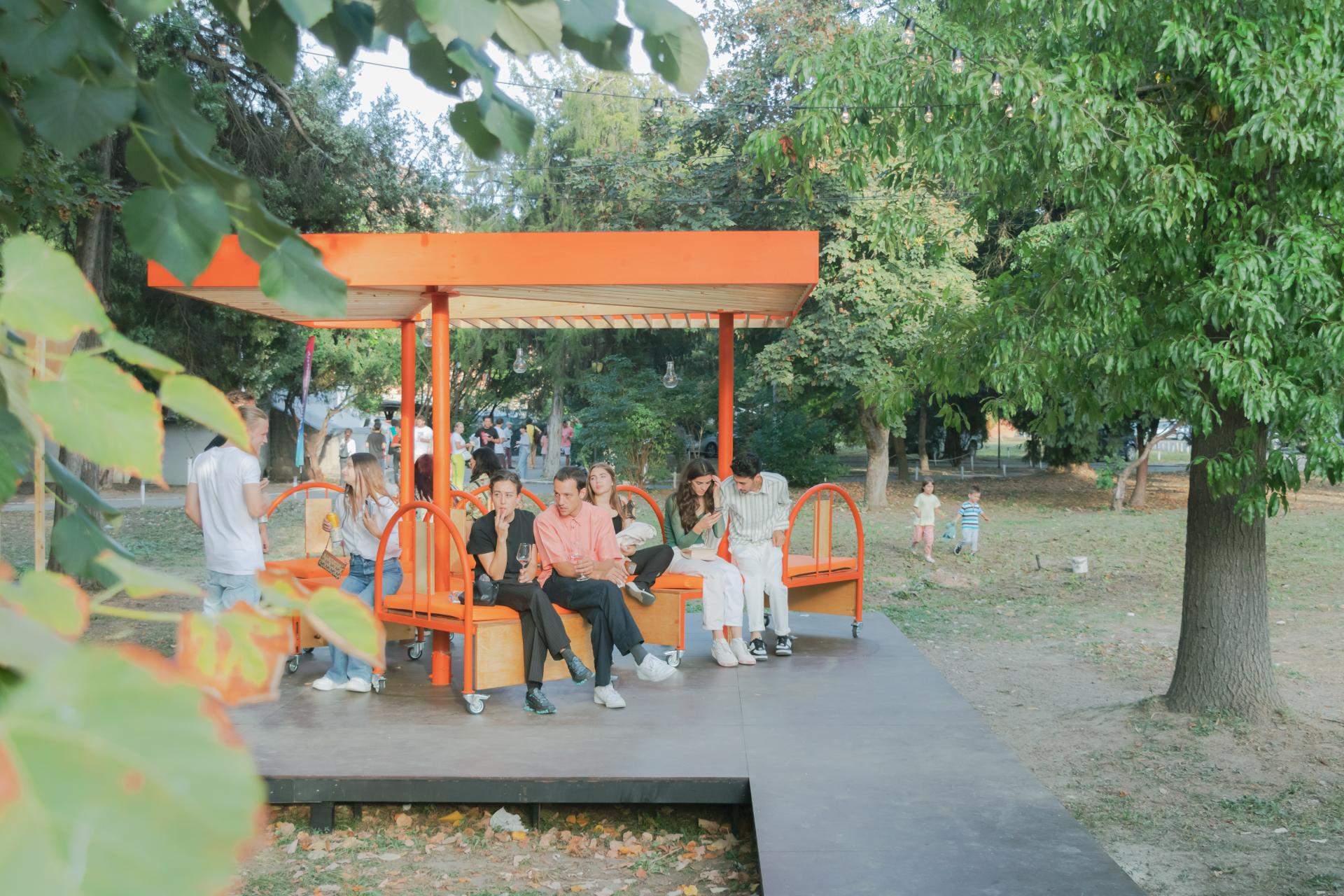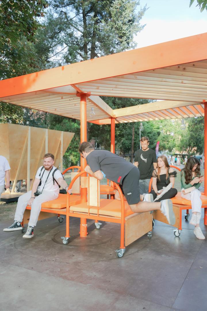 The pavilion has revitalized an underused space, becoming a landmark element of the campus that provides visitors with unique spatial experiences. By being located next to the ARChA building, an iconic element of the city's architectural heritage designed by the renowned architect Duiliu Marcu, the pavilion has restored a sense of belonging and underlined the 'significance' of this place. Following its inauguration, the place has become an outdoor meeting point, fulfilling its intended role and serving as a hub for various activities. The pavilion has become a gathering spot for academic staff before courses, a place for people to spend their afternoons, or even a stage for concerts organized by students.