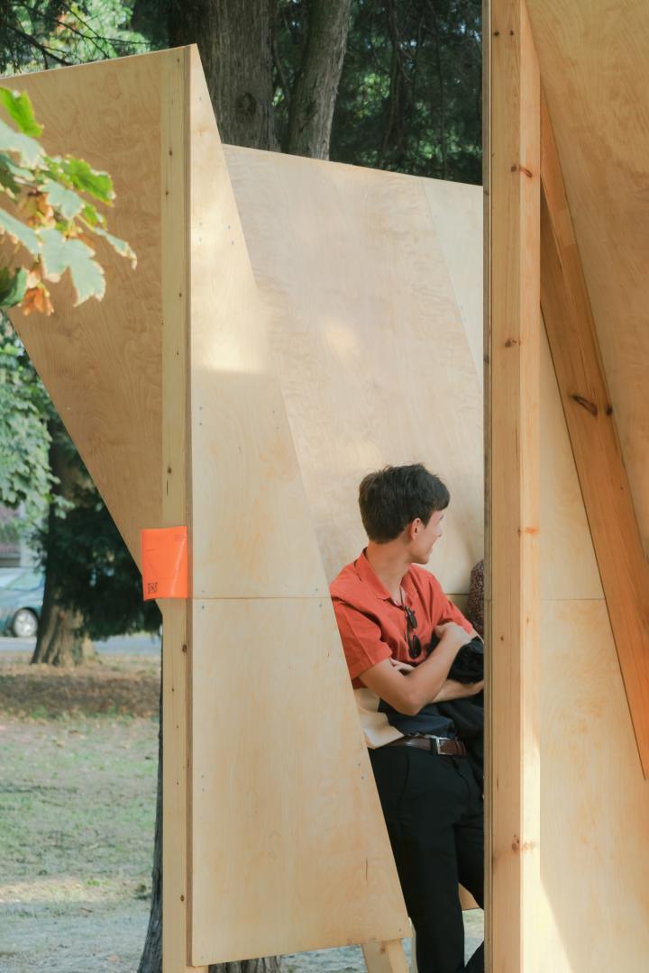 Rather than creating another pavilion as a mere aesthetic experiment with the potential to squander materials, the project took a conscientious approach. The tutors initiated a call to repurpose recycled materials from other art installations in the city, leveraging the abundance resulting from Timișoara, as this year it was the European Capital of Culture. Additionally, each pavilion adhered to sustainable goals by utilizing local resources such as wood, local seeds, and trees from a nearby nursery.