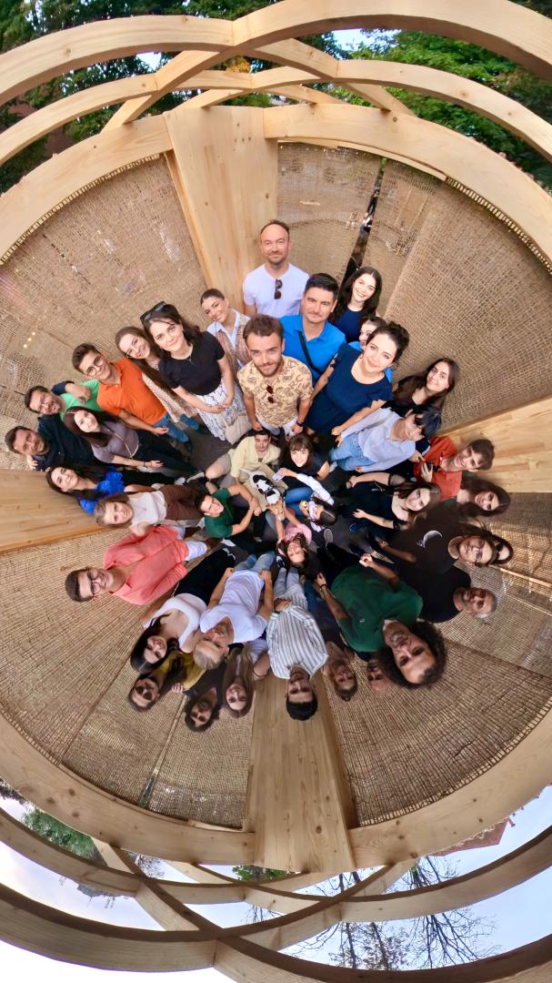 The preparation for the pavilion began with a series of online meetings among the tutors of the five architecture faculties in Romania. Over two months, they worked together to outline the general theme based on the topics of the UIA Congress 2023. In July, the first physical meeting took place for five days, bringing together tutors and students and creating a good opportunity for site visits, theme discussions and the development of the pavilion concept through exercises, presentations and a co-design process.